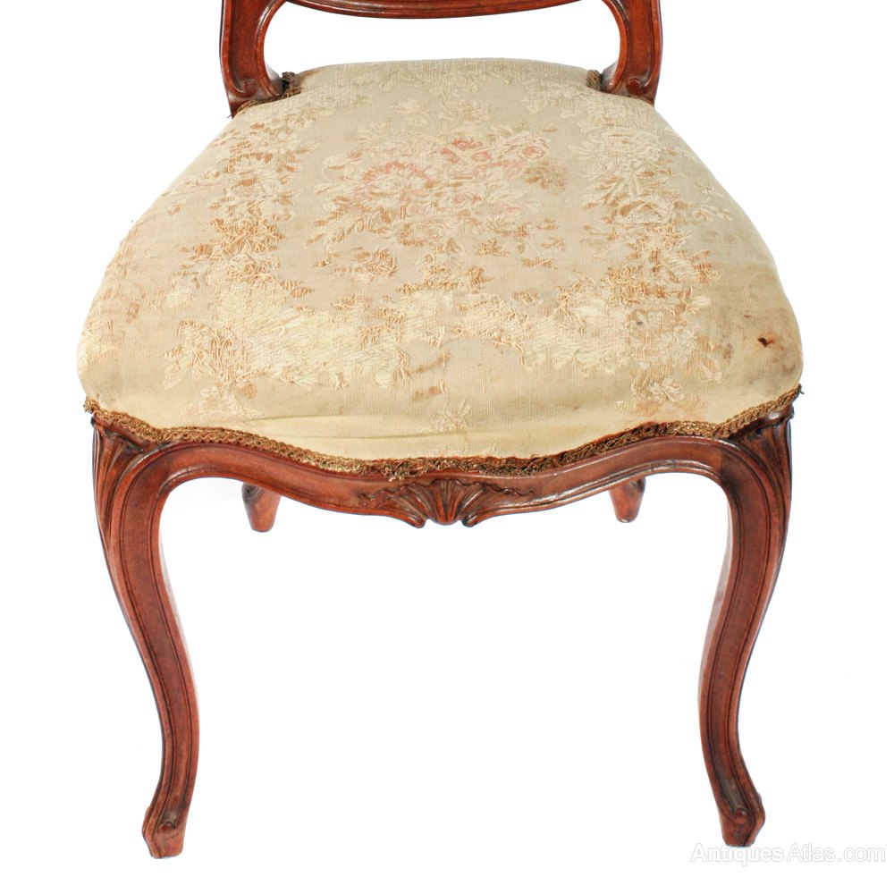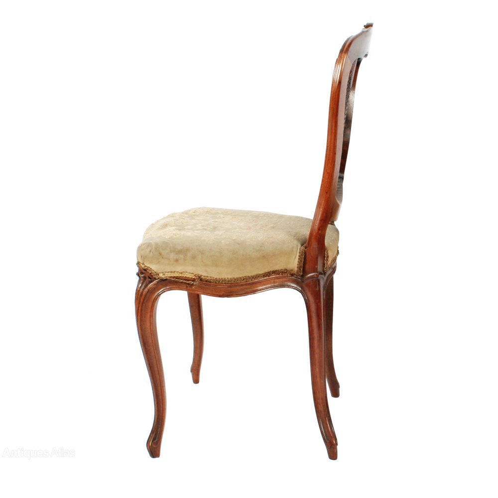 The chair stands on four cabriole shaped legs and has a serpentine front rail with a central carved decoration.