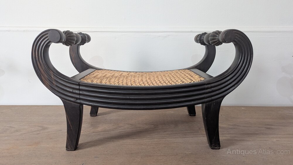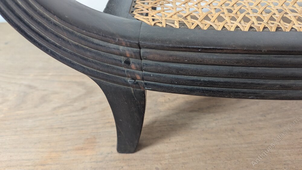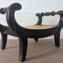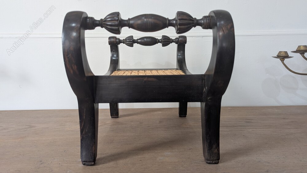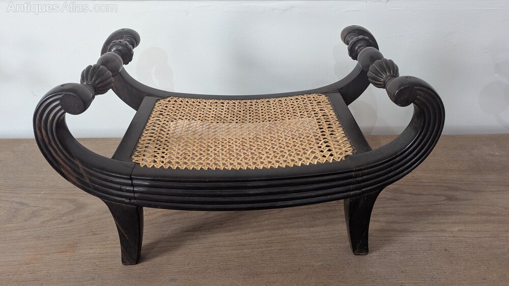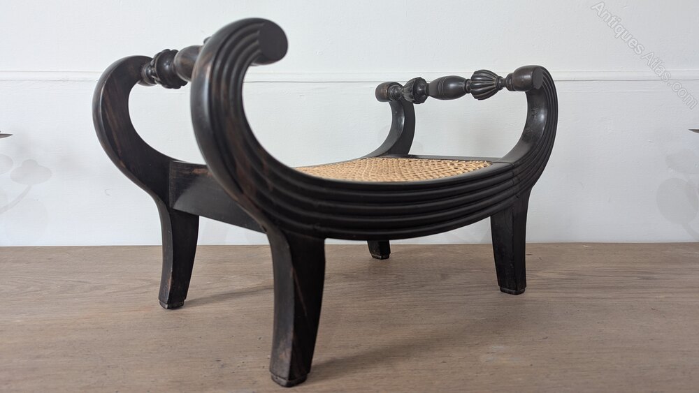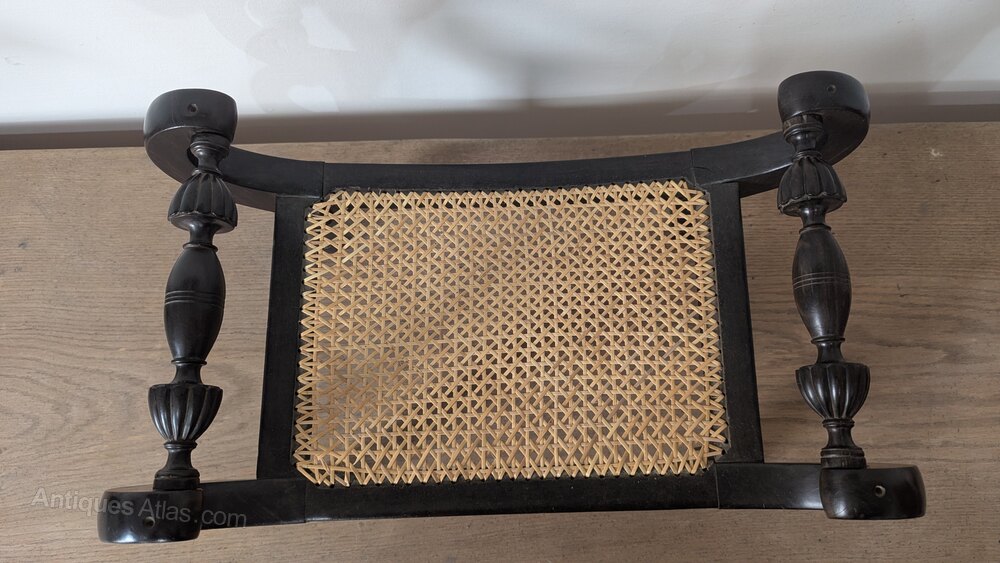 A Victorian Ceylonese caned ebony stool showing wear with age related small cracks as is to be expected from this dense brittle wood. It measures 49 cm x 27 x 28.