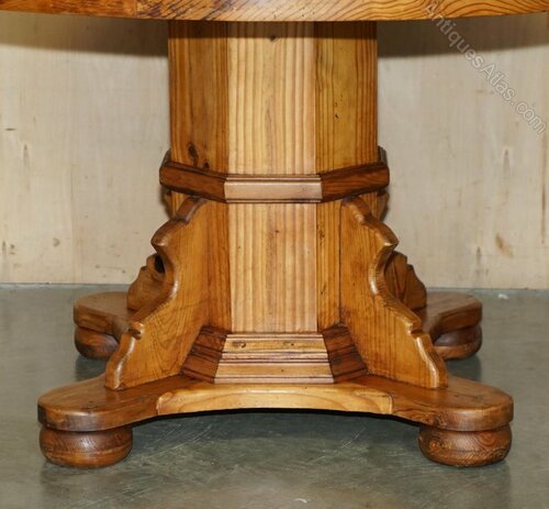 We are delighted to offer for sale this sublime Circa 1940's Pitch Pine dining table that seats 4 with ease and up to 6 with a thick pedestal base