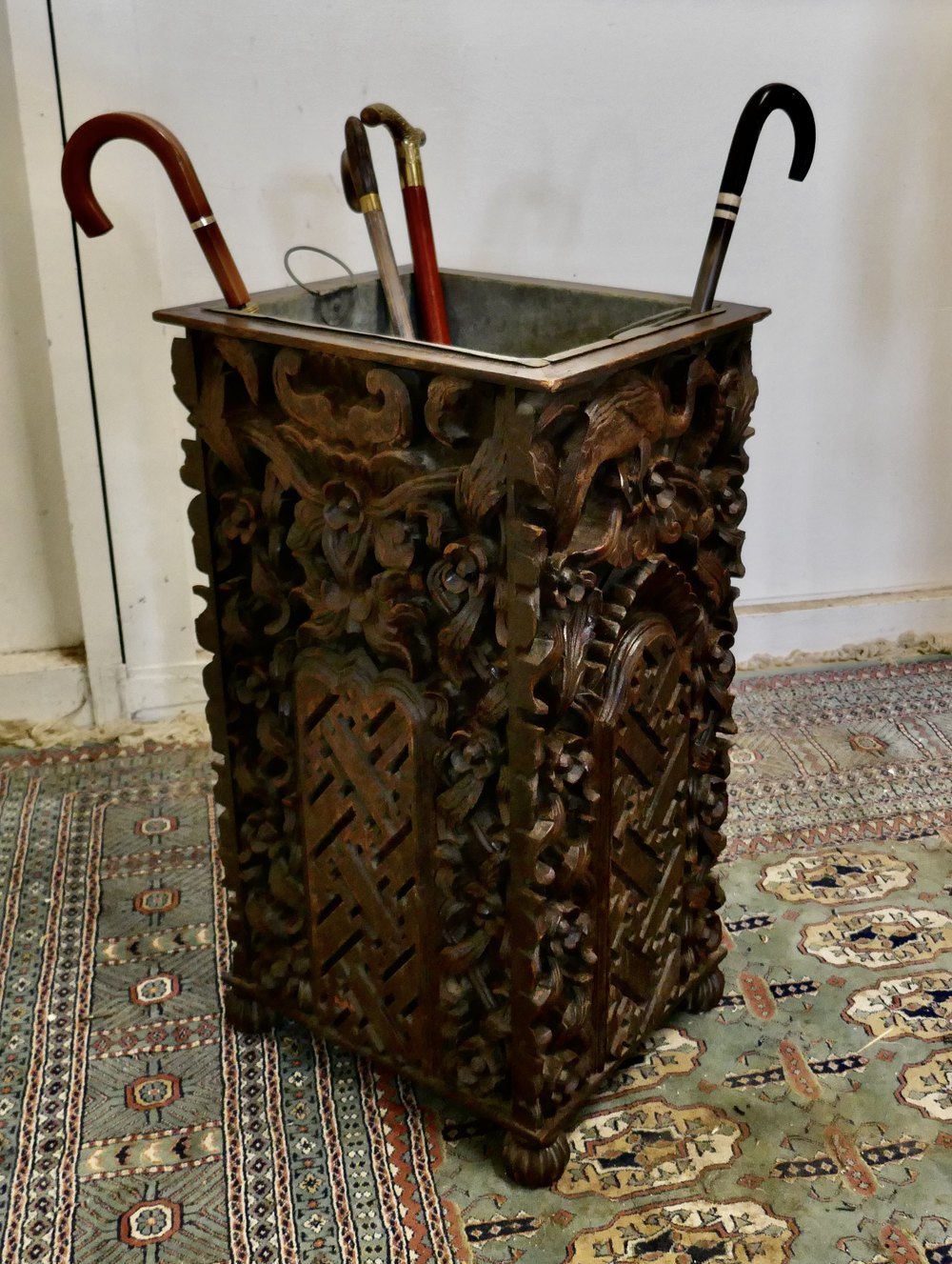 Country House Carved Gothic Oak Umbrella Stand