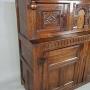 The central fielded panel with architectural arch and oak leaf border and the whole cupboard with original pegs and extremely substantial and well made.