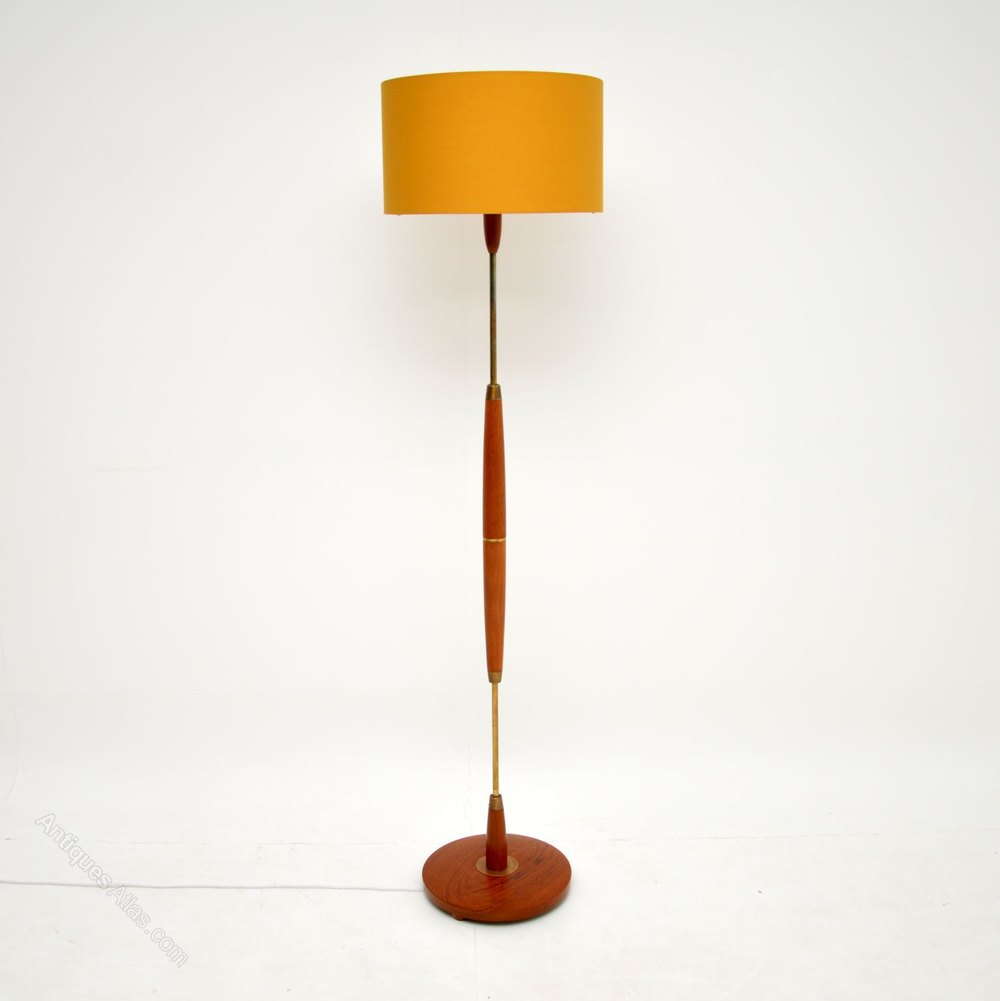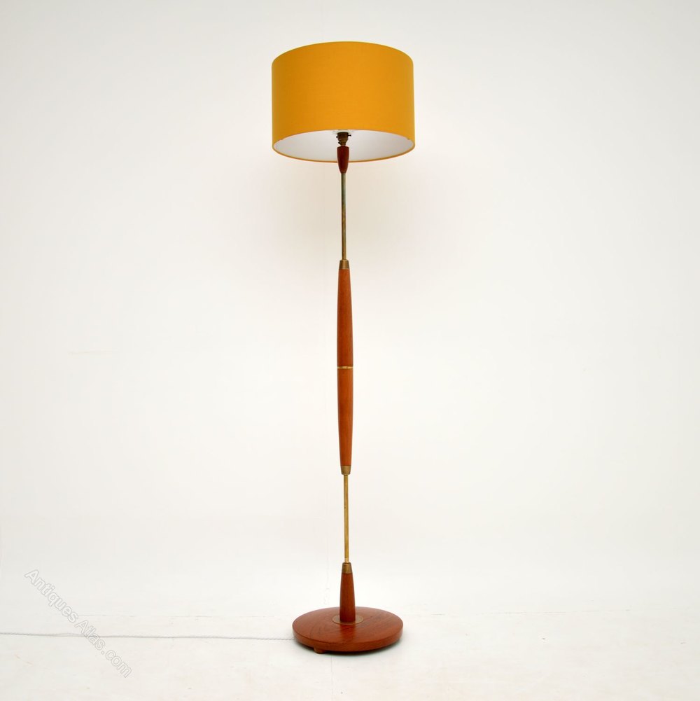 Danish Retro Teak & Brass Floor Lamp Vintage 1960s
