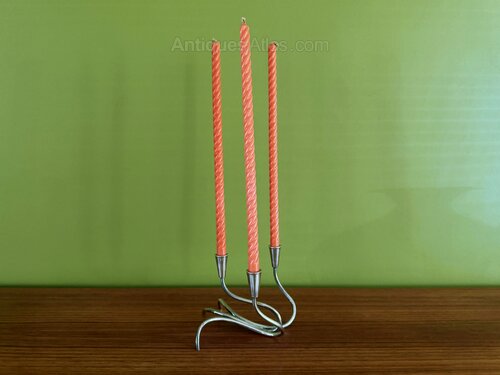 A beautiful silver-plated, Danish mid-century modern, 3 armed candle holder. The candle holder is hallmarked for Carl F. Christiansen (a crown with the letters 'CC'), dating it to pre-1963 when he finished production, and stamped 'Denmark'. The delicate candle holder takes 3 Danish taper candles. A beautiful centrepiece for your Christmas table, or a lovely gift.
