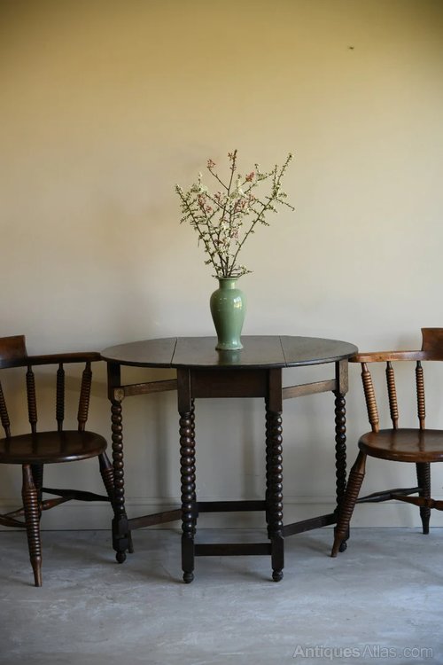 Dark Oak Bobbin Drop Leaf Table