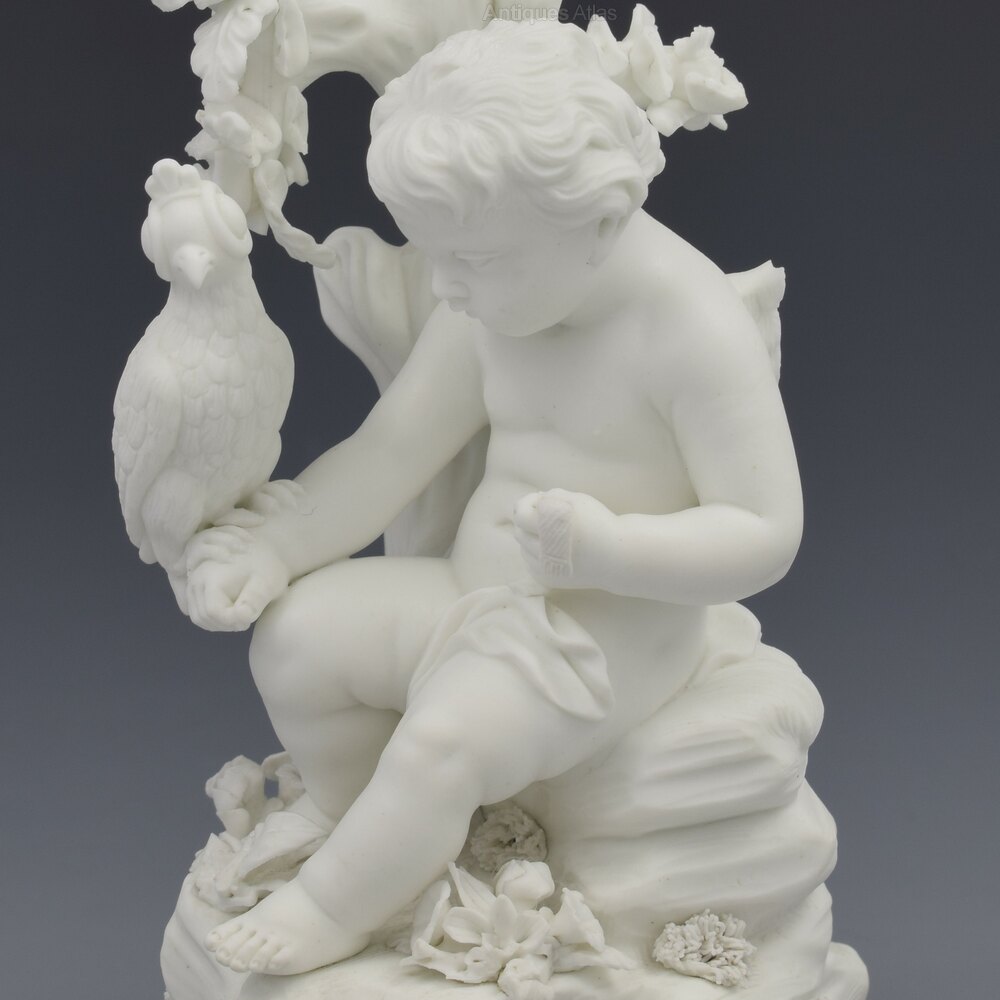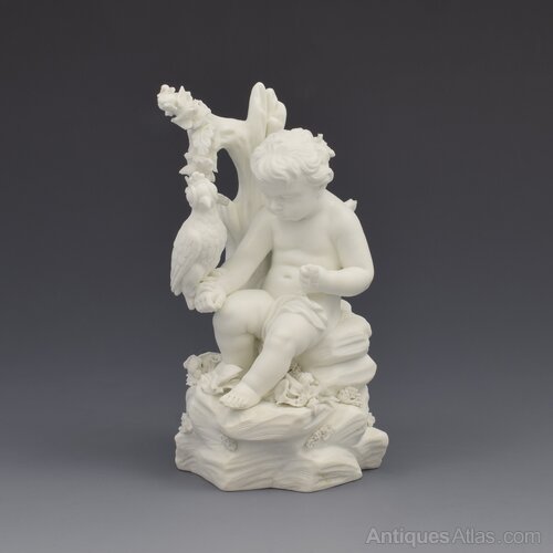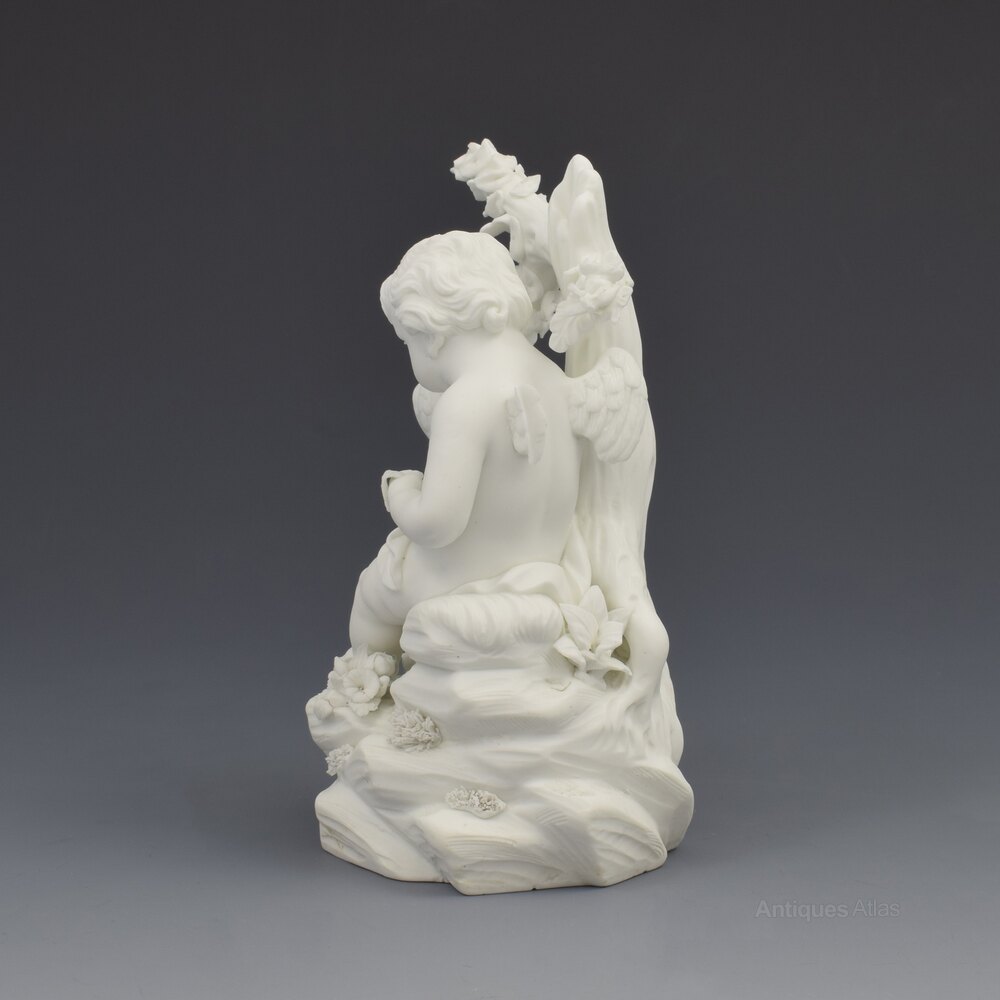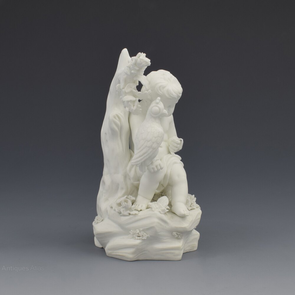 Rare Derby Porcelain Figure Cupid With Doves & Key