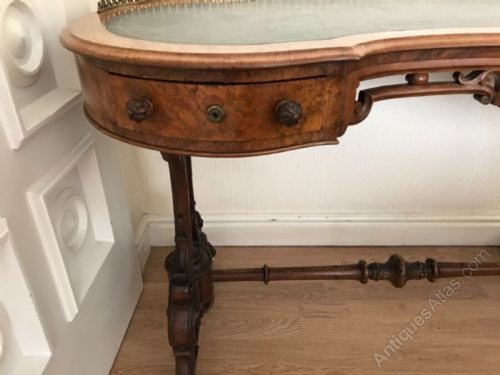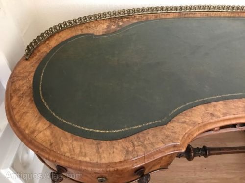 Desk Kidney Shaped Burr Walnut With Inlays