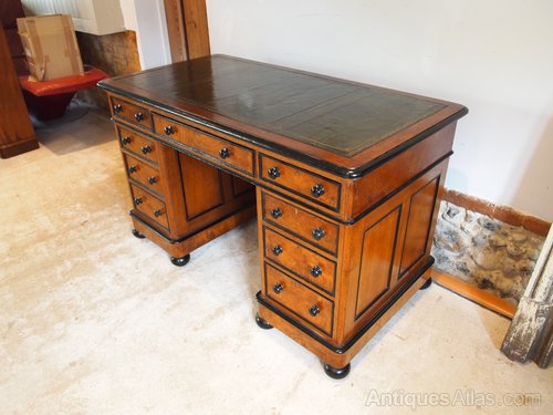 Antique Victorian Walnut Leather Top Pedestal Desk