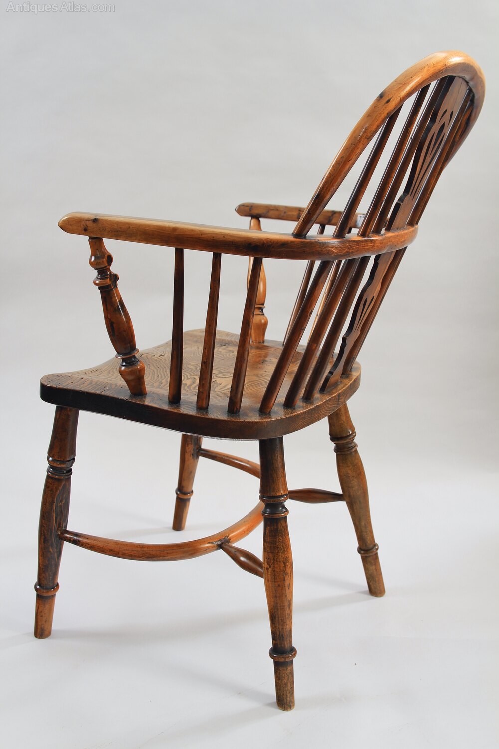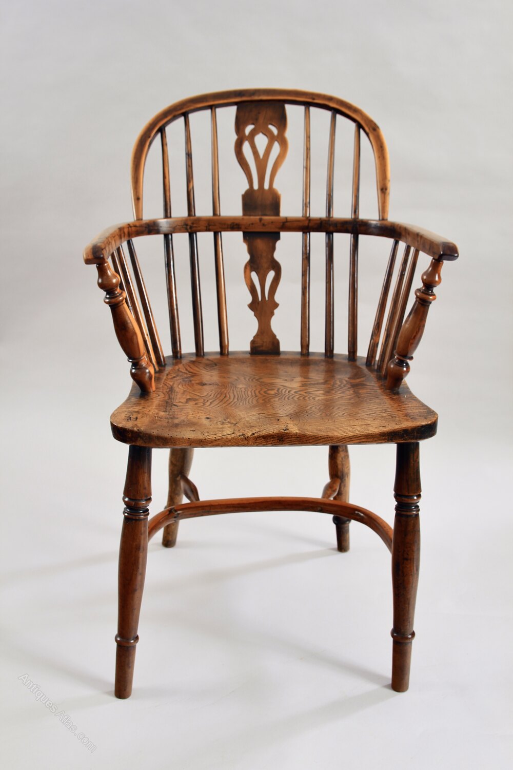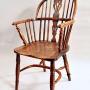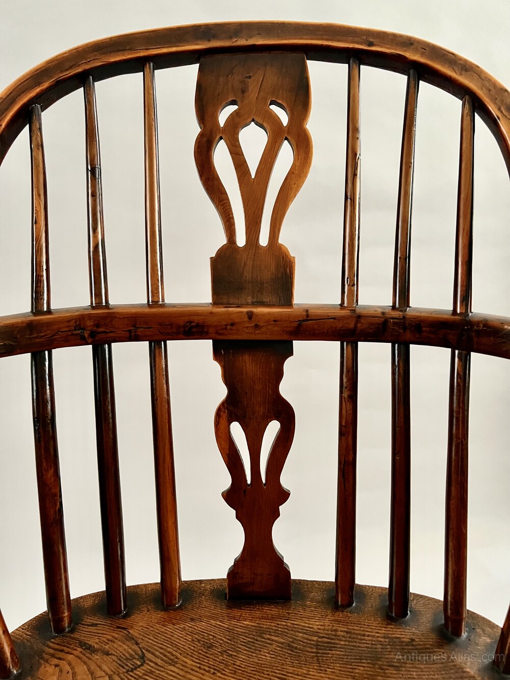 Sit and enjoy the Christmas cheer in this fine early 19th century yew wood Windsor Armchair. The art of bentwood chairs came to a height at this time, with the top and back rail, and the crinoline stretcher below the seat, all made of yew wood carefully bent to make the chair. The seat is made of a particularly attractively grained piece of ashwood.