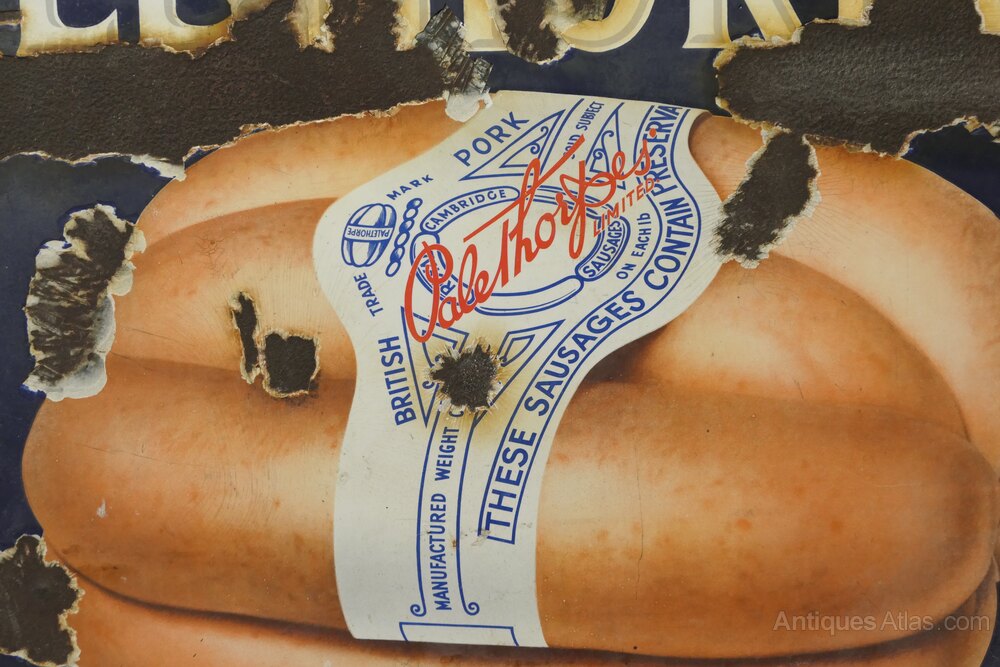 Large Early 20th century Palethorps Pictorial Enamel Sausage Sign