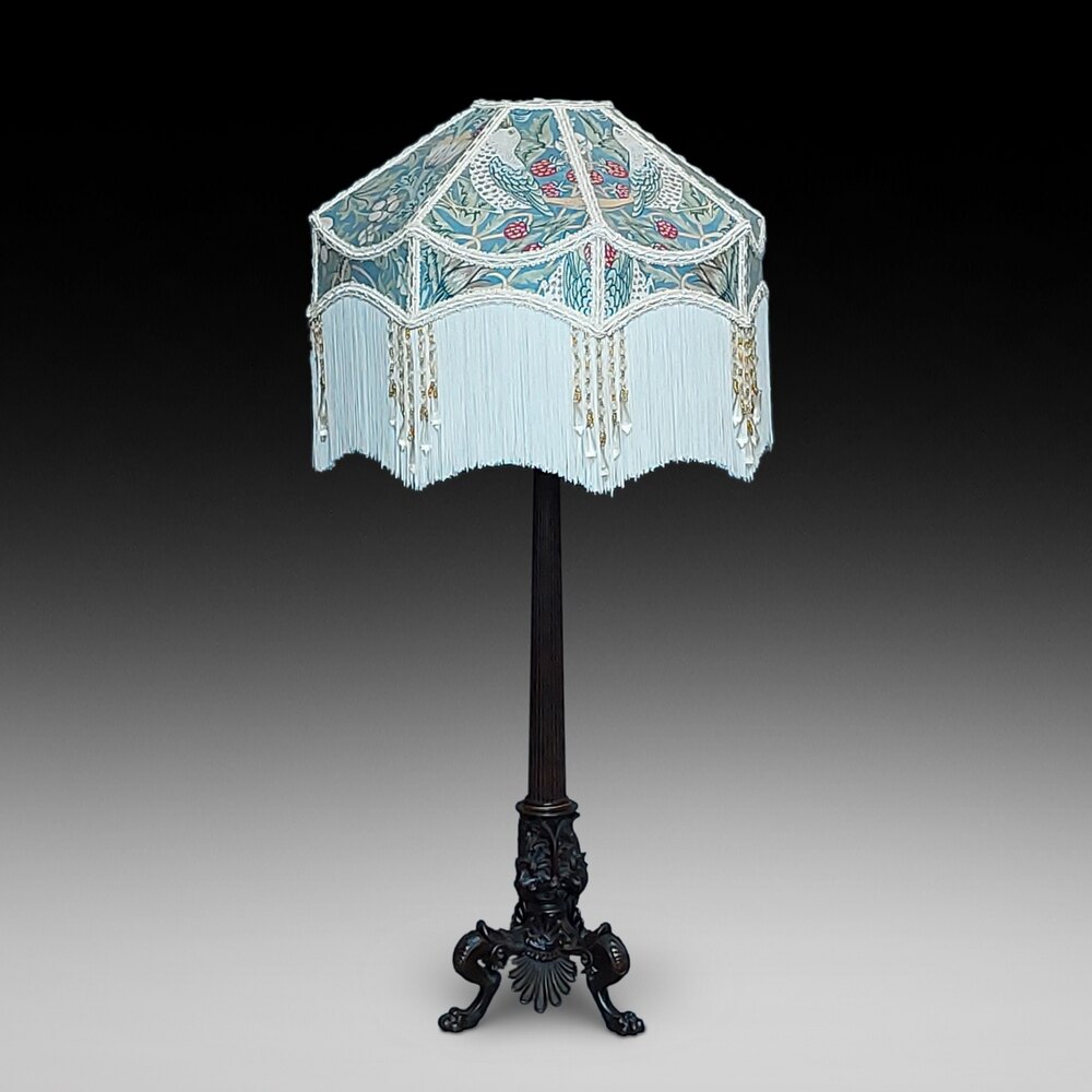 An early 20thC Neoclassical Bronze Lamp, in the form of a Corinthian Column on Anthemion Decorated Tripod Base in the form of Lions Legs - 14"diam x 32"h - all lights and lamps have been rewired with authentic corded flex, fitted with either foot switch or finger clicker switch and are Pat tested.