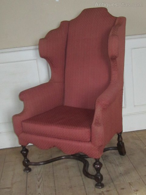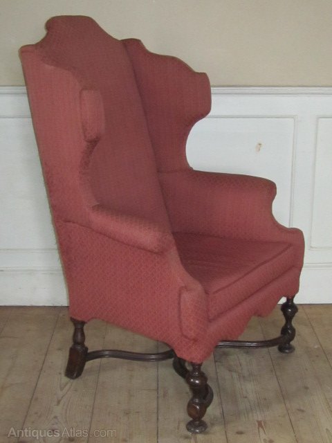 Early 20thc Queen Anne Style Wing Chair, walnut