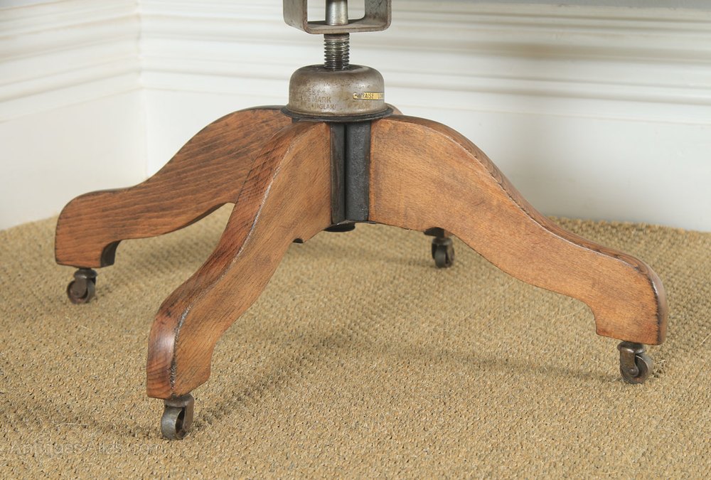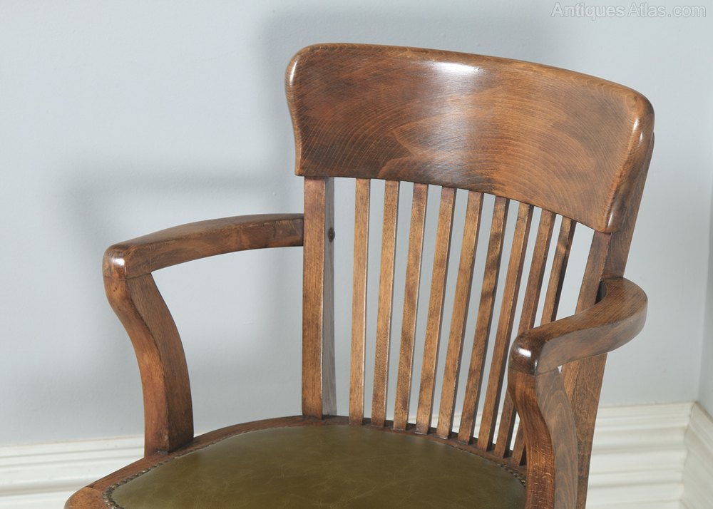 Edwardian Beech & Leather Revolving Desk Arm Chair