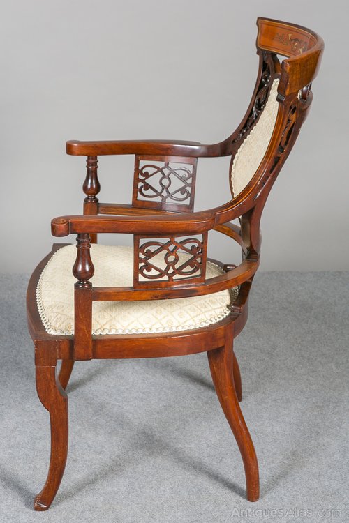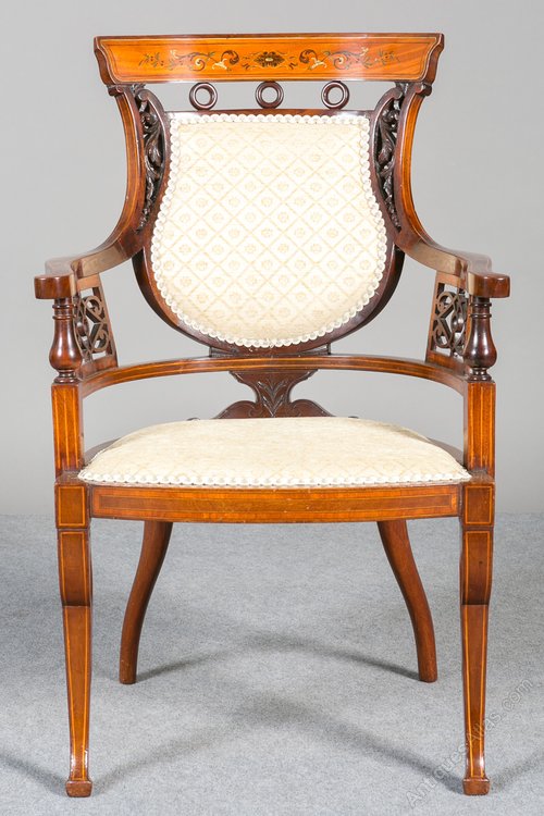 Edwardian Mahogany and Inlaid Elbow Chair