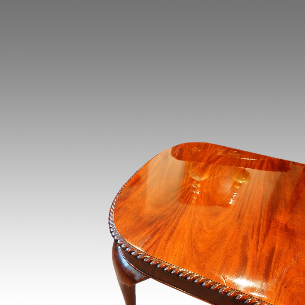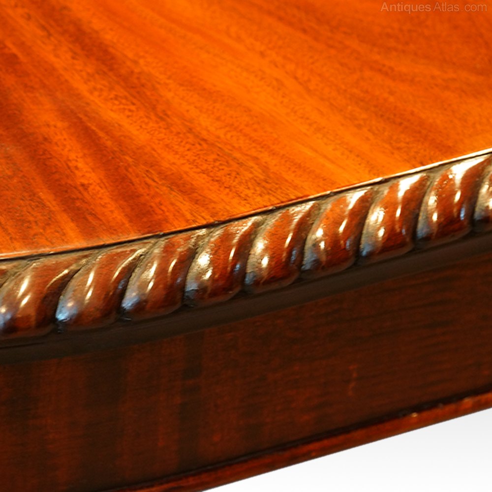 The Edwardian table has the very attractive gadrooned edge (rope-twist), and stands on plain cariole legs with bold claw and ball feet with concealed castors under.