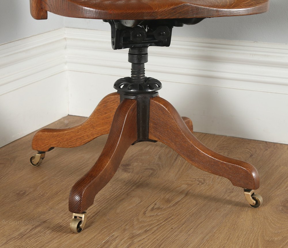 Edwardian Oak Revolving Swivel Office Desk Chair