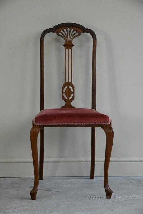 Edwardian Occasional Chair. Antique Edwardian side chair, mahogany frame with upholstered seat on cabriole legs.