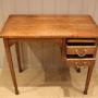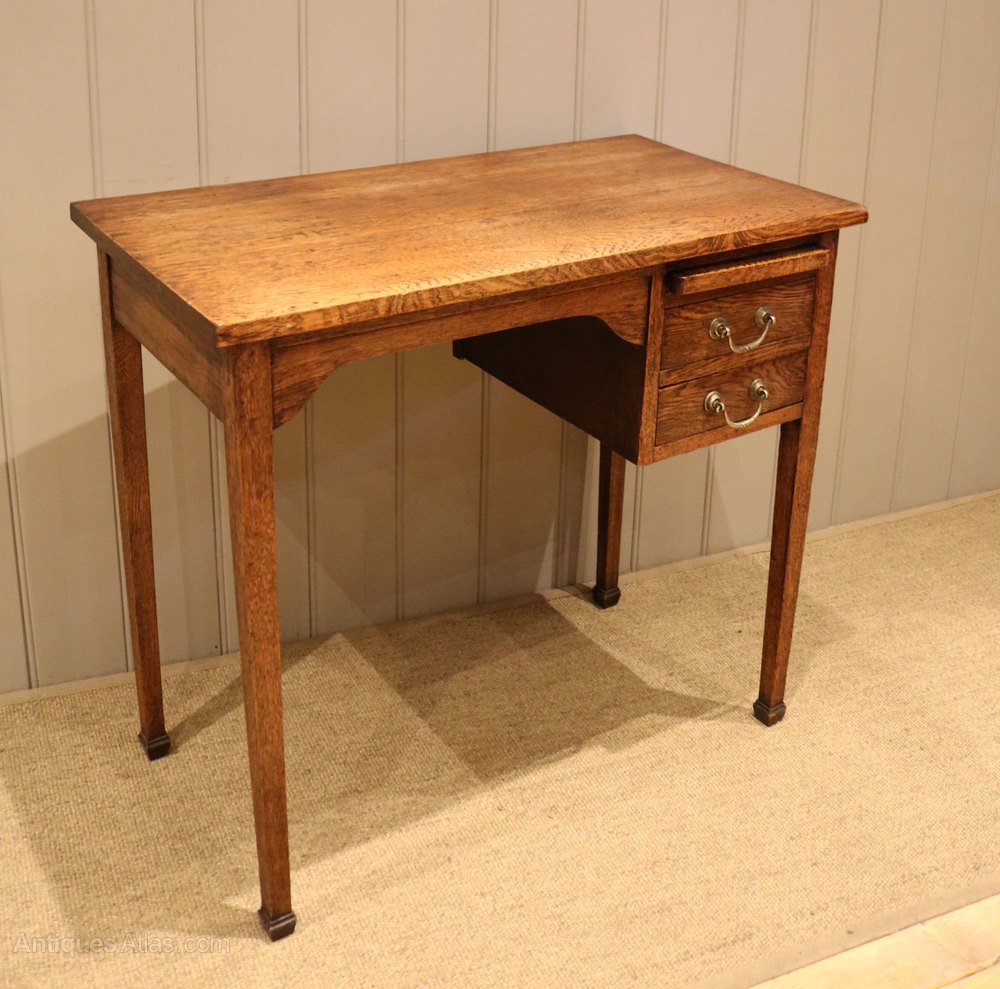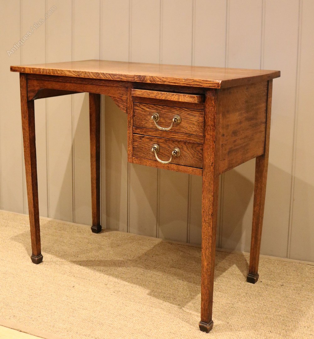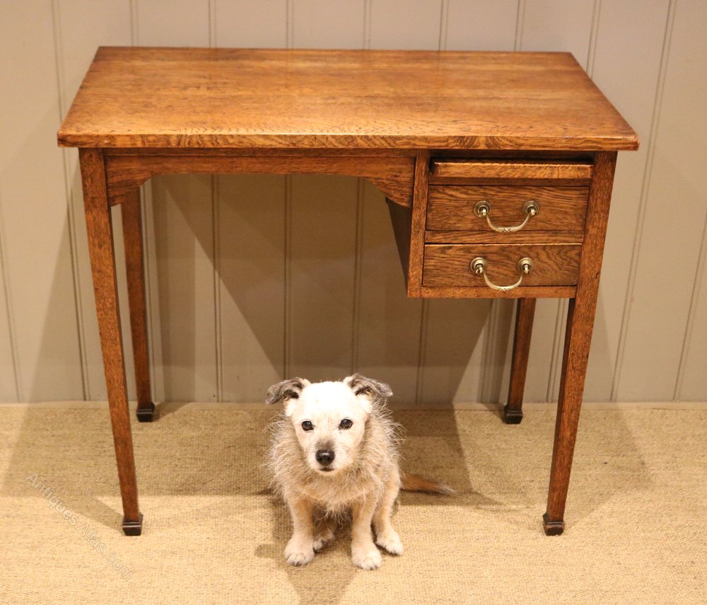 Attractive small solid oak desk having two drawers with a pull out slide above , raised on straight tapering legs with shaped feet