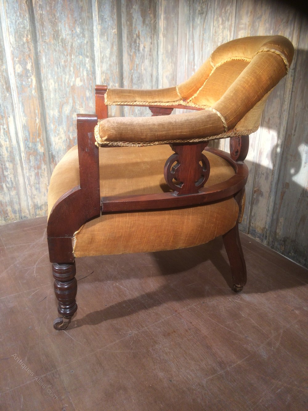 Edwardian Velvet Tub Chair which is upholstered in golden velvet with golden piping. Sitting on ceramic castors
