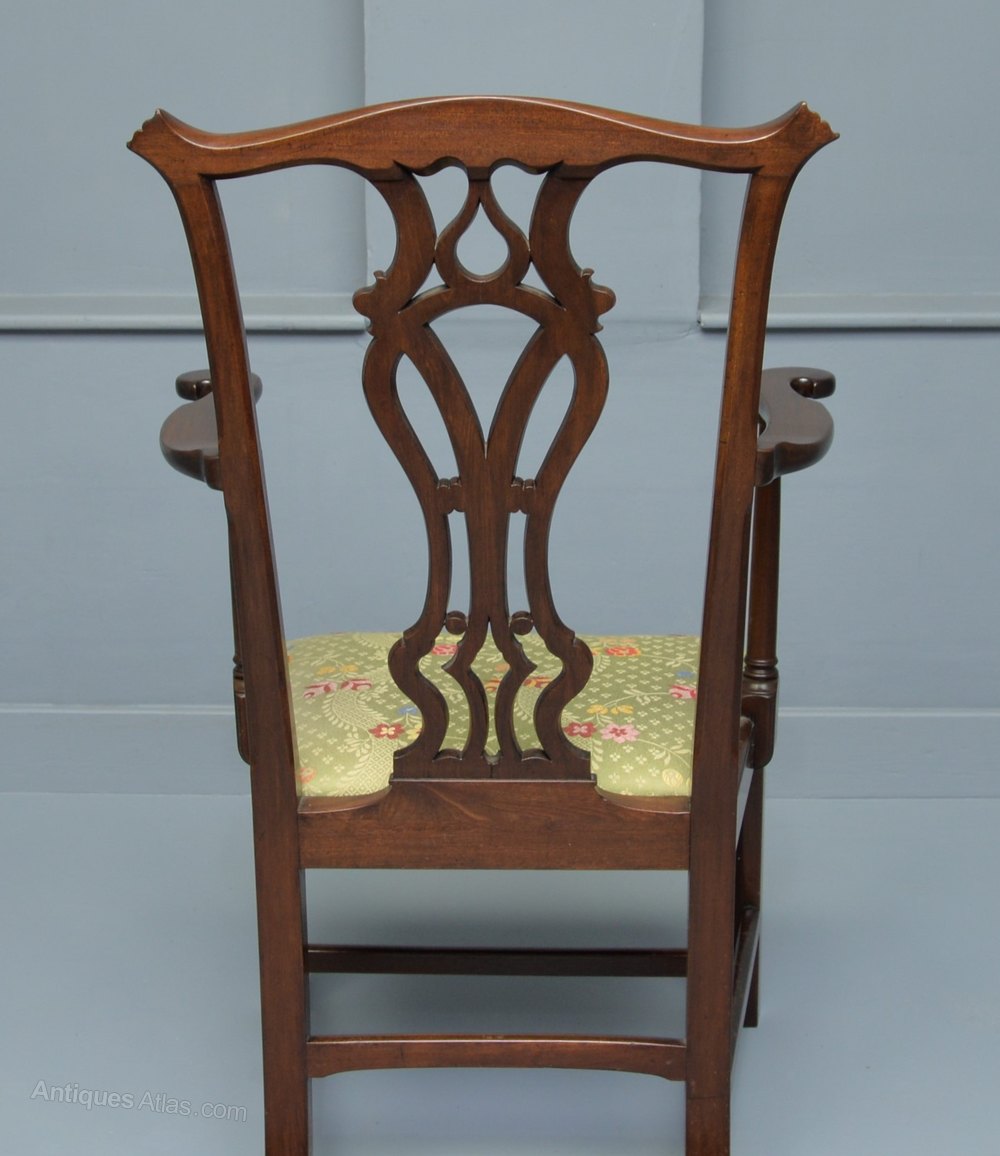 Elegant Chippendale Revival Mahogany Elbow Chair