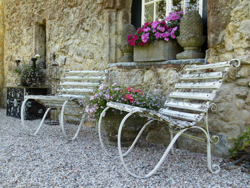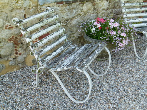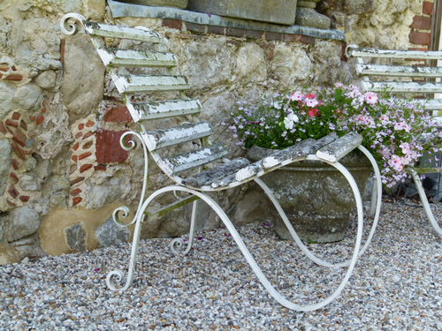 Having a delightful scroll design wrought-iron frame, with wooden slats. With a comfortable s shaped seat.