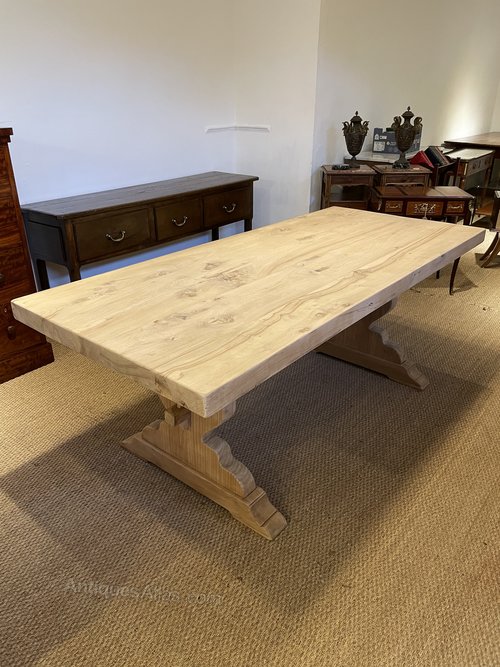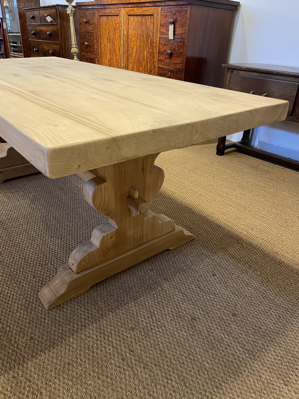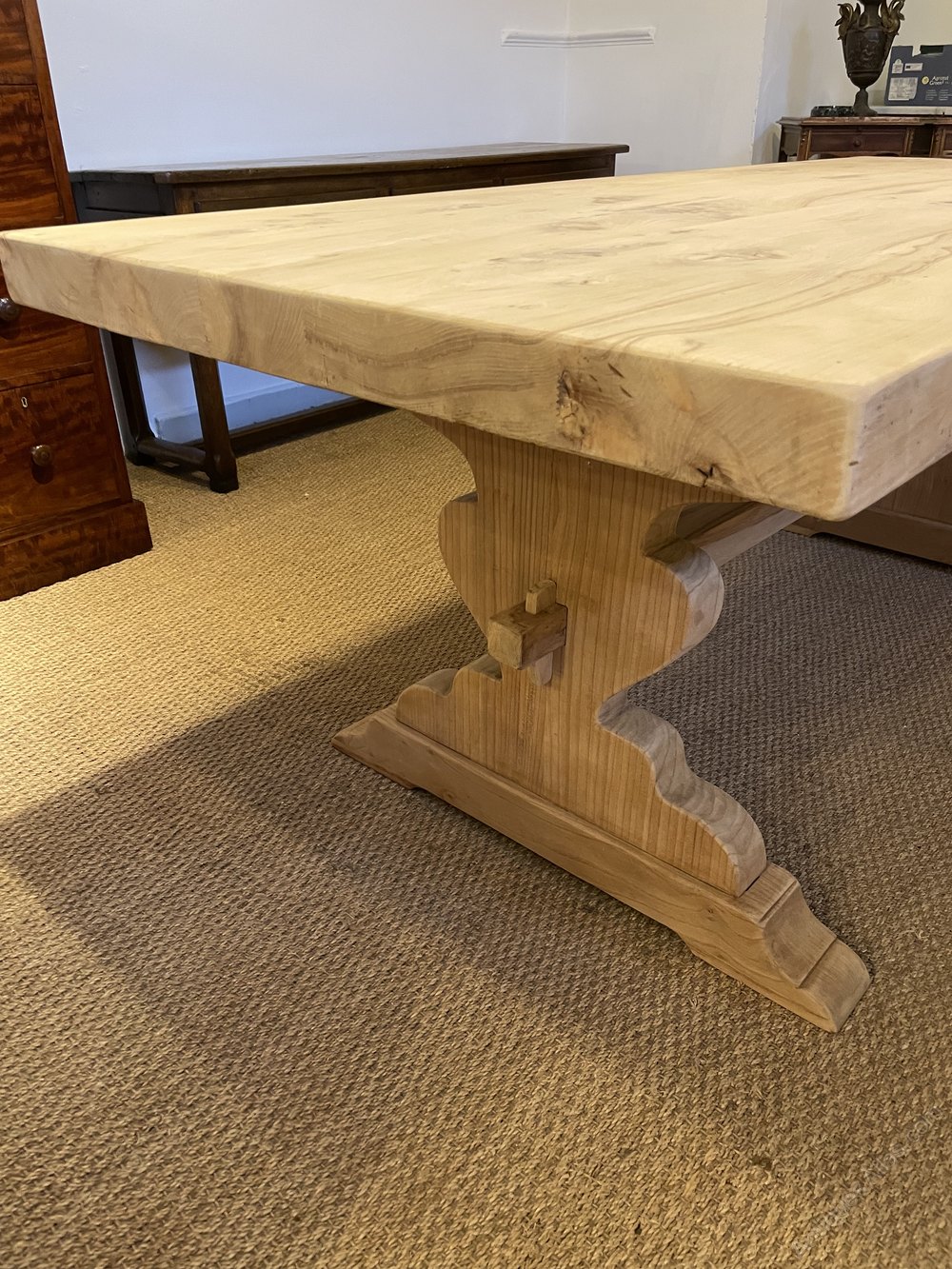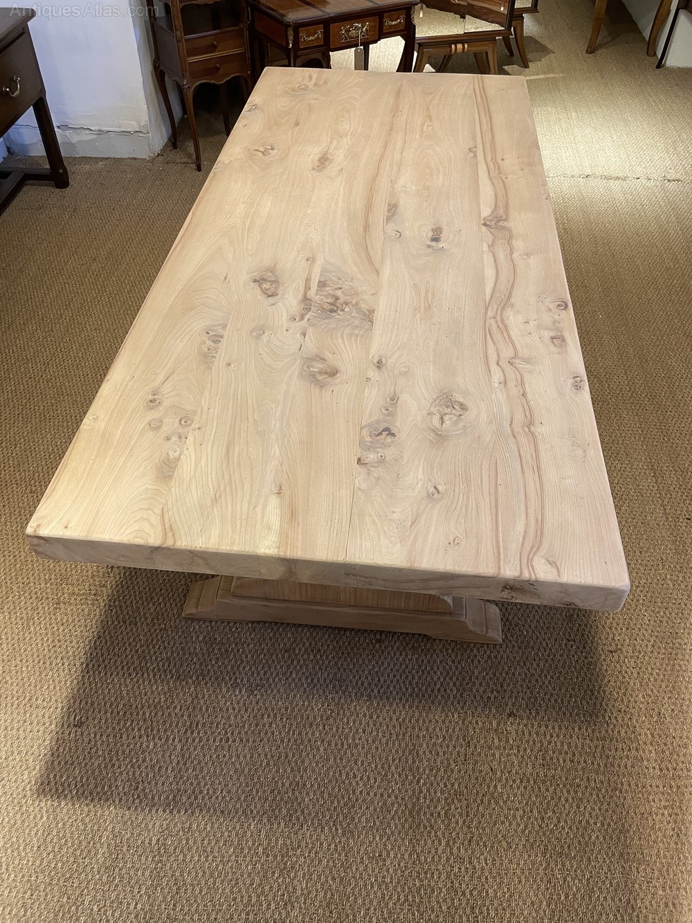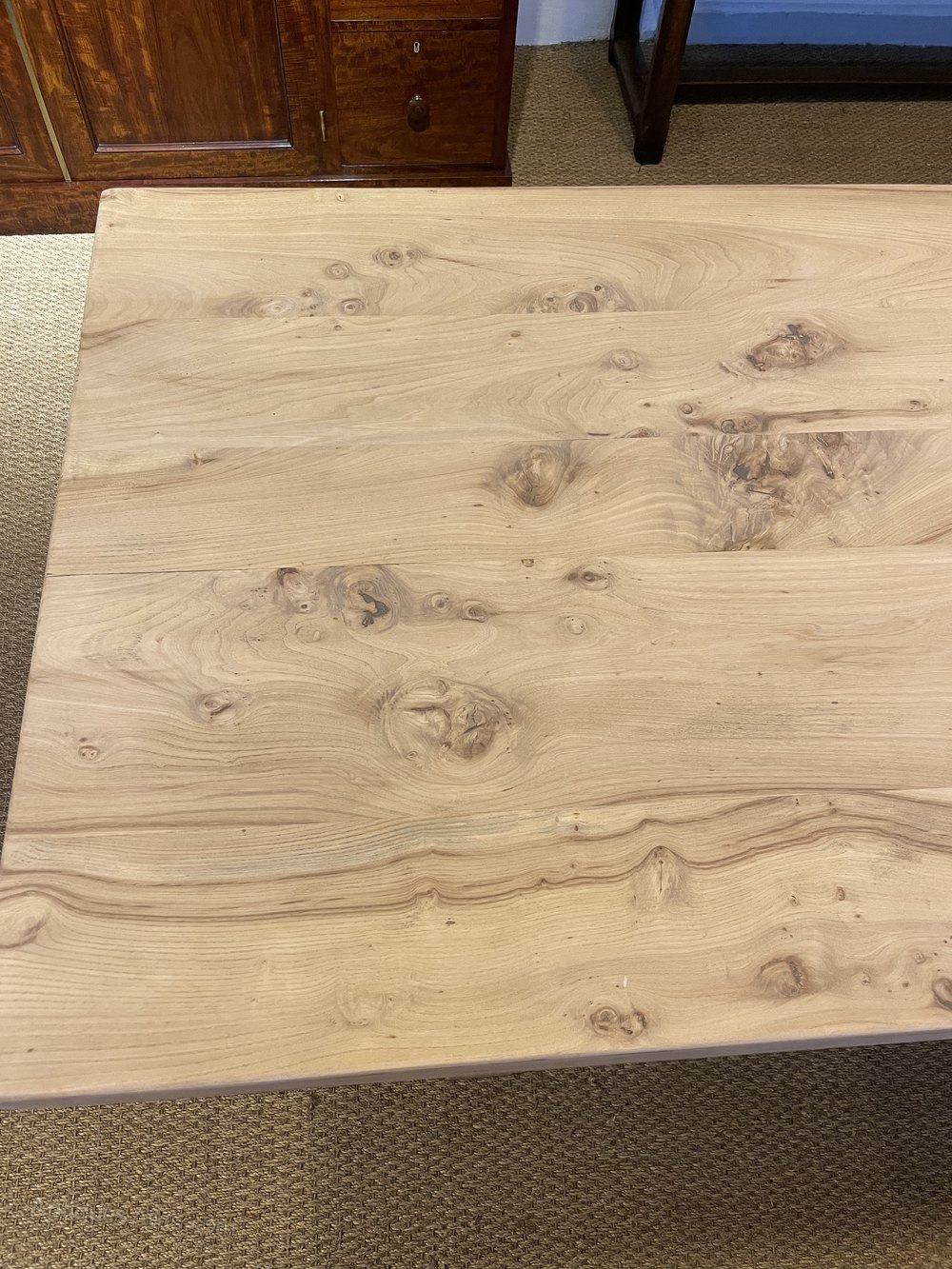 Wonderful 20th century scrubbed elm refectory table , lovely figuring to the top