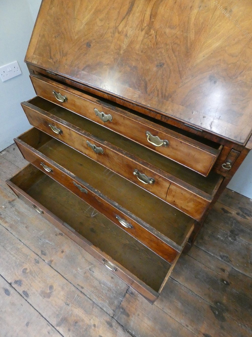 The bureau is in good condition, a old repair to the top, some old historic treated worm to the back of the drawer linings. It is a good colour and patina, with free running drawers.