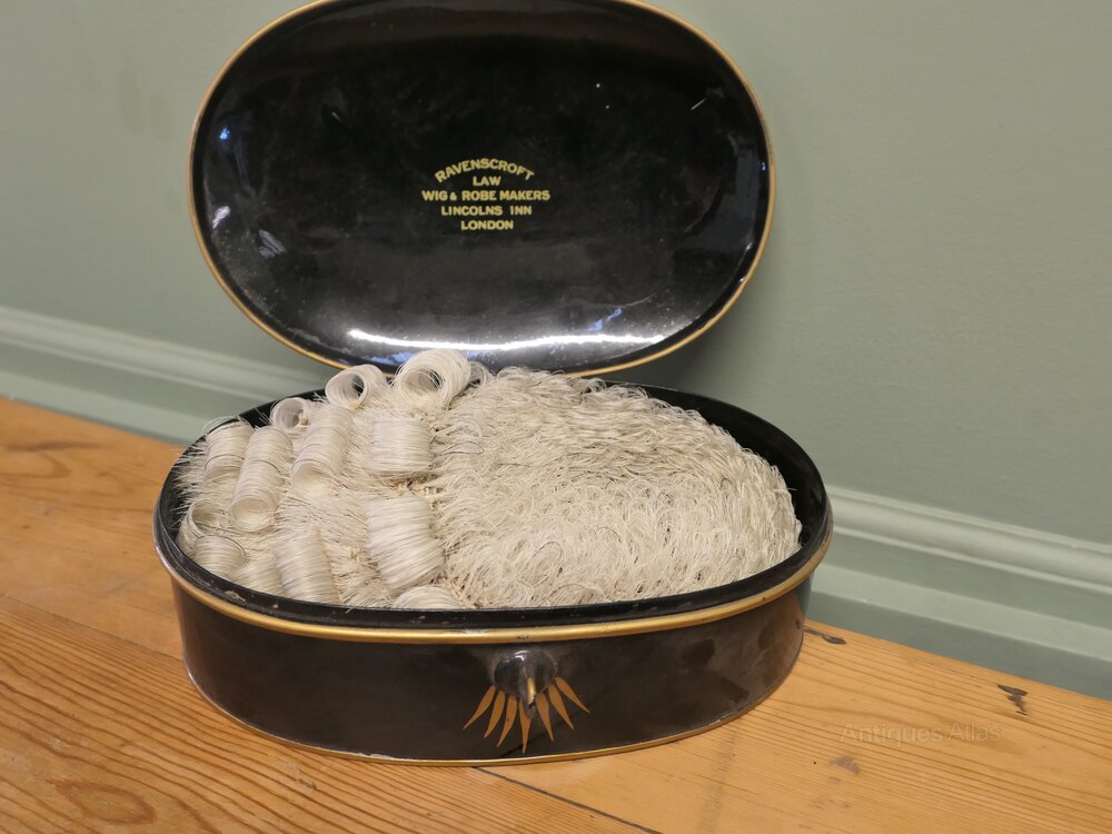 English Barrister's Bench Wig in Original Tole Box by Ravenscroft Law