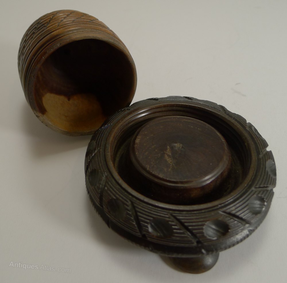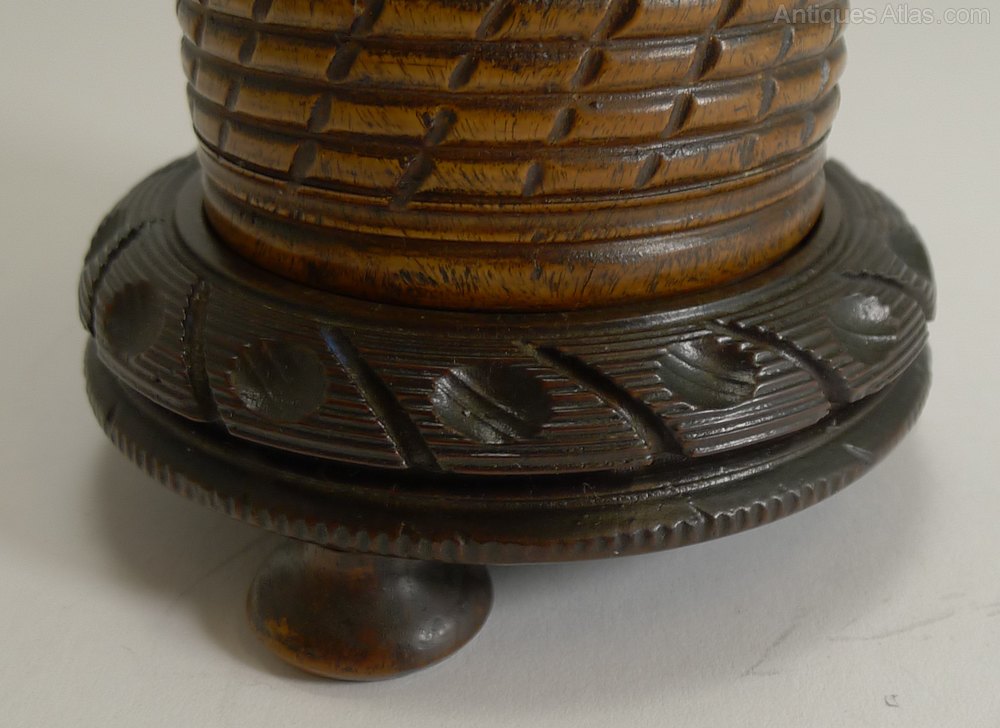 The box is beautifully carved in the form of a Beehive and made from Lignum Vitae.