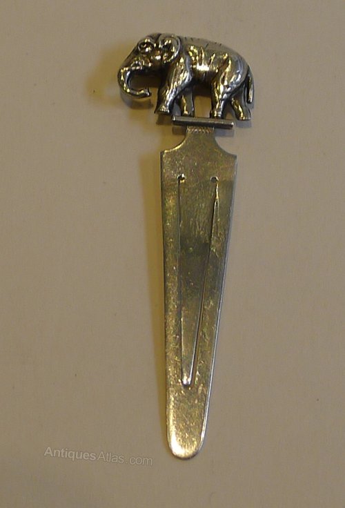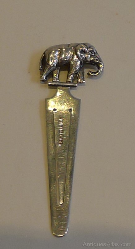 A charming and highly collectible little book mark crowned with an elephant. Made from sterling silver it has a full English hallmark for Birmingham 1925 together with the makers mark for the well renowned silversmith, Adie and Lovekin. Excellent condition, measuring 2 3/8" in length.