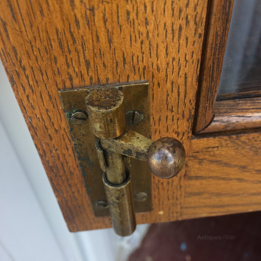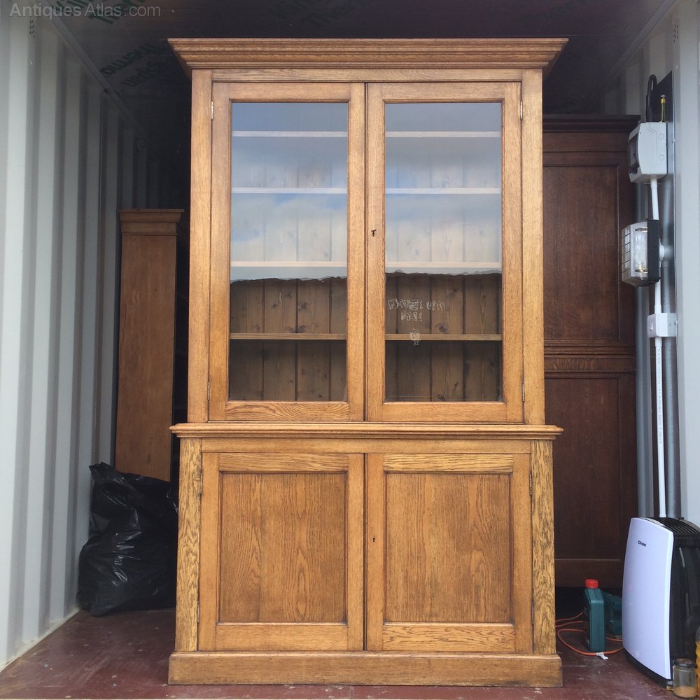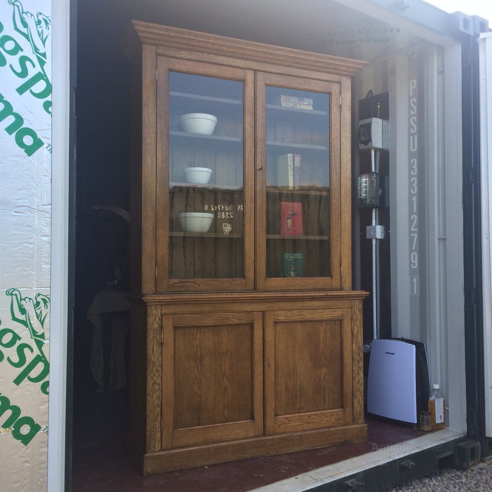 Classic straight lines , hansome proportions, stylish character storage ,lovely relaxed colour , English Oak bookcase / display cabinet on cupboard.