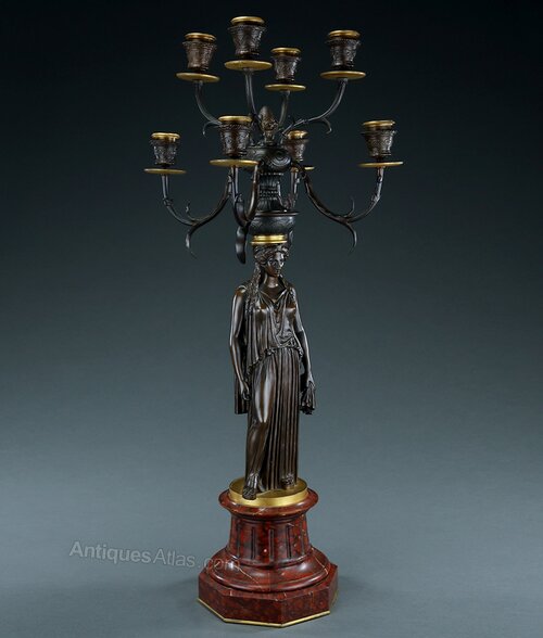 Pair Barbedienne Bronze and Ormolu Candelabra