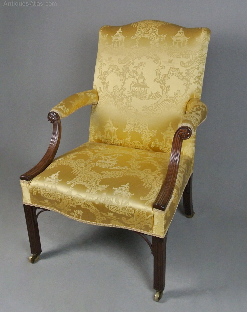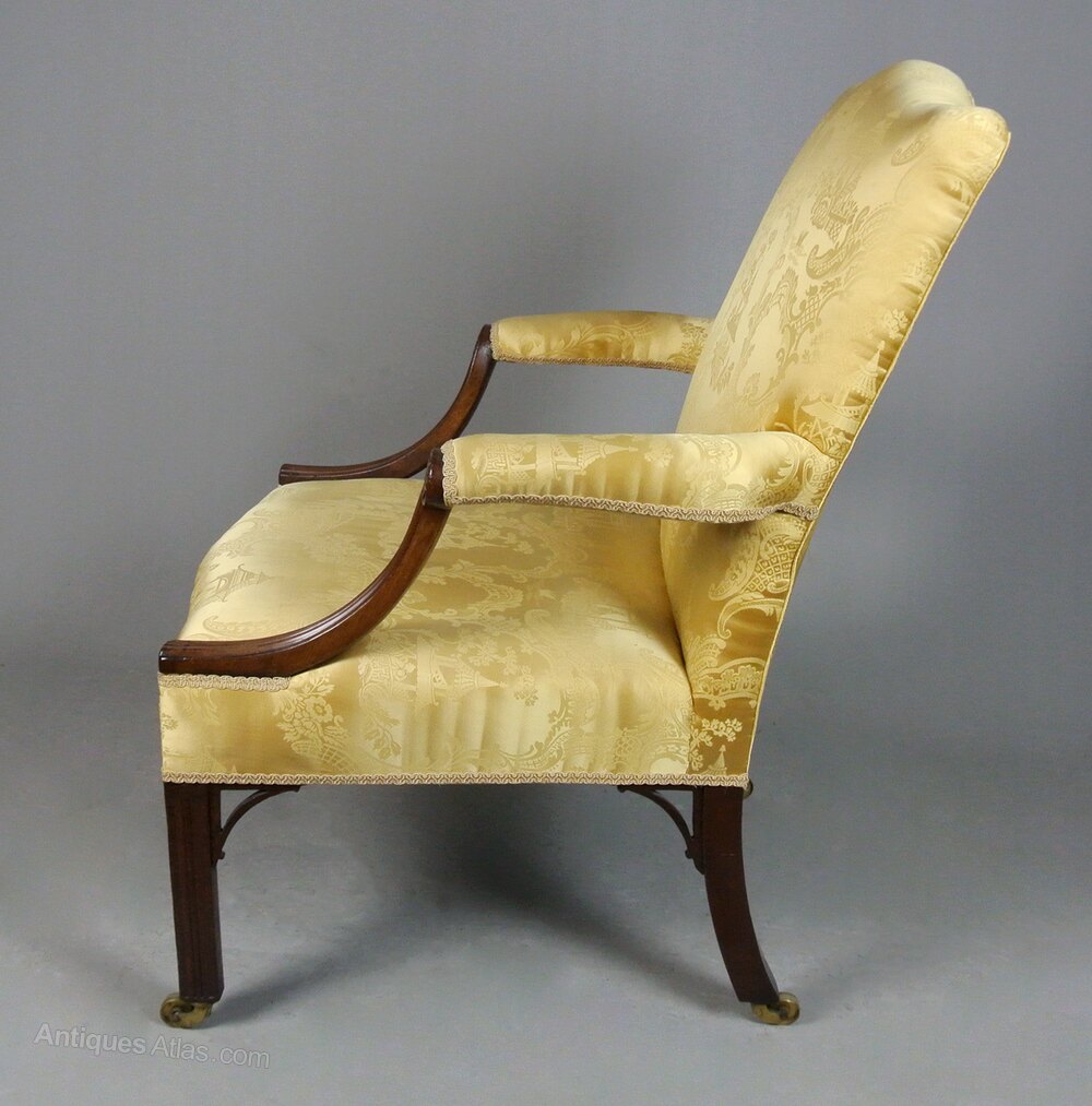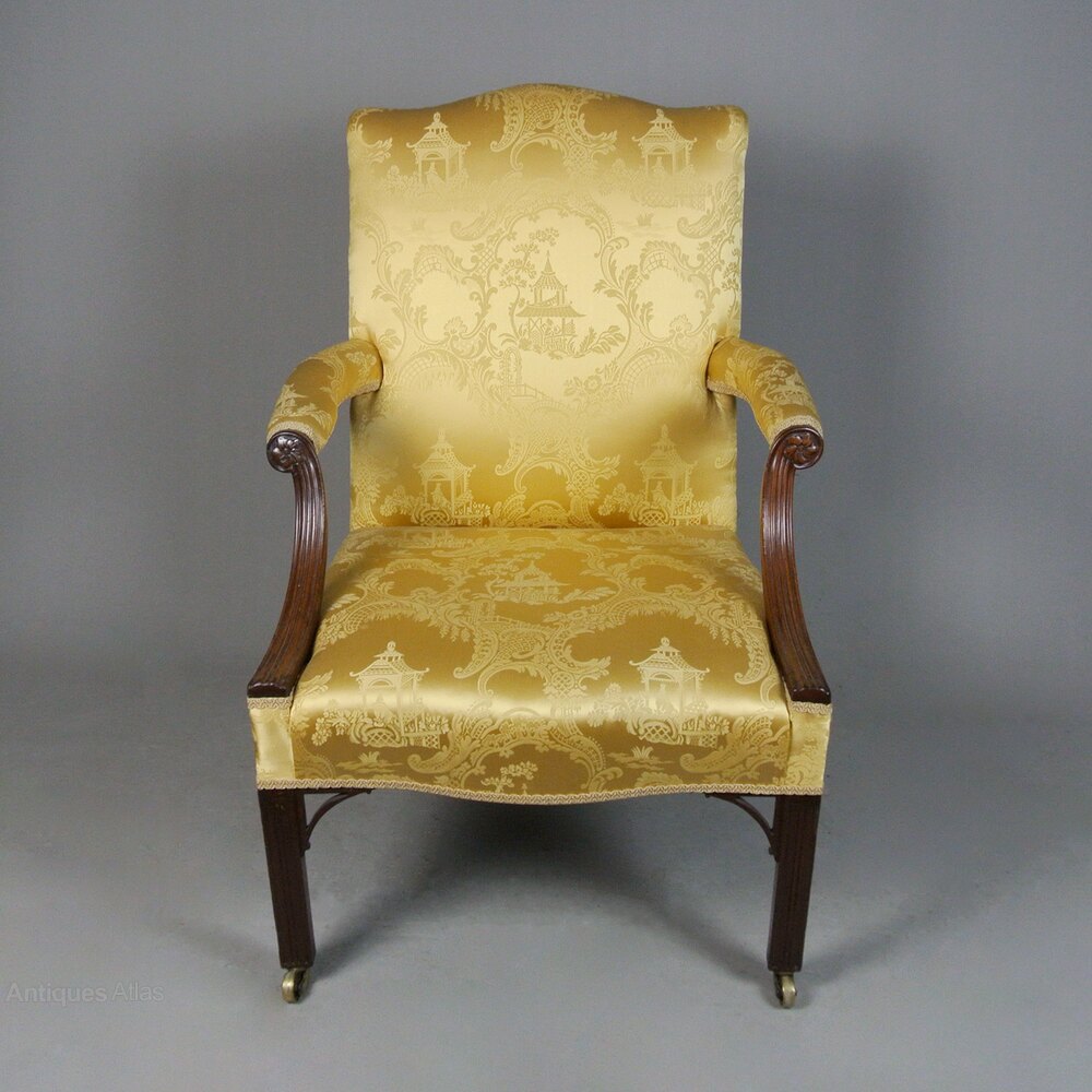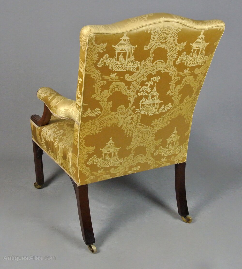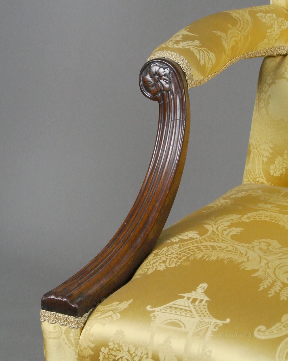 Recently upholstered in a Chinoiserie old gold coloured pure silk called ‘Cathay’ which is made by the Gainsborough Silk Company. This particular silk fabric retails at over £200 per meter.