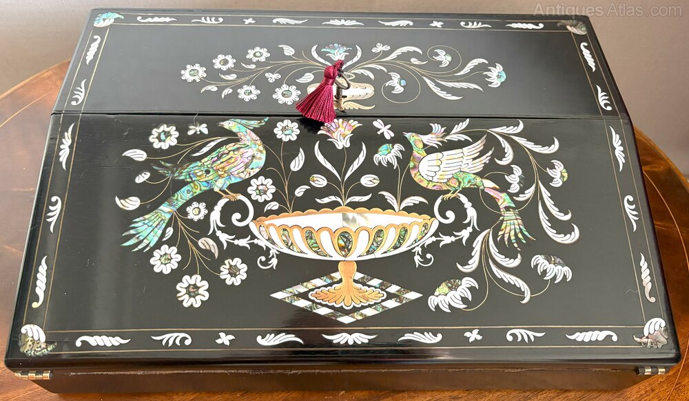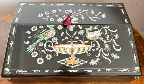 Fine Ladies Inlaid Ebony Writing Slope