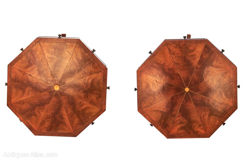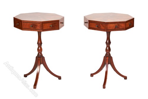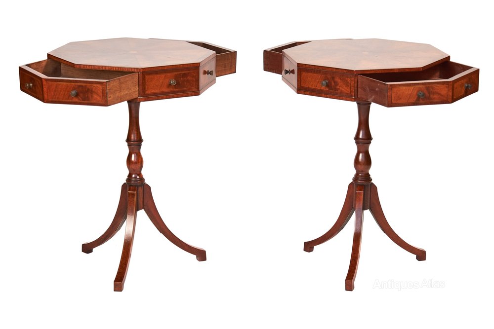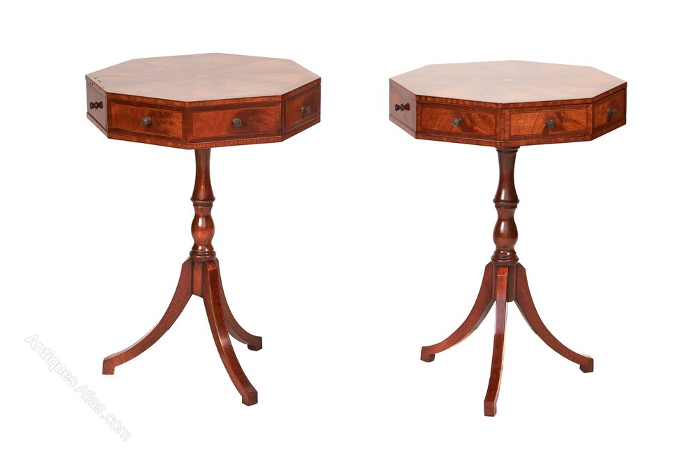Fine Pair Mahogany inlaid Octagonal top Drum table