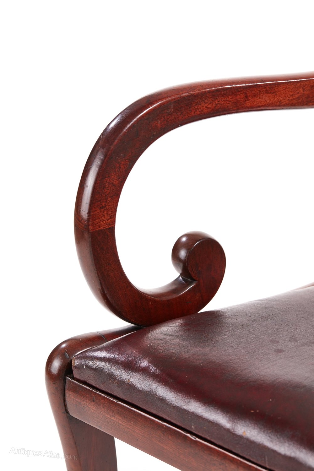 Fine pair of Regency Brass Inlaid Elbow Chairs
