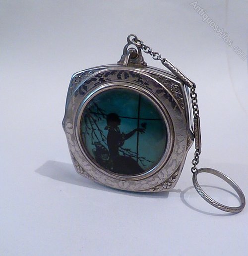 Finger ring compact compact mirrors silhouette lady with bird on her hand antique compacts for sale