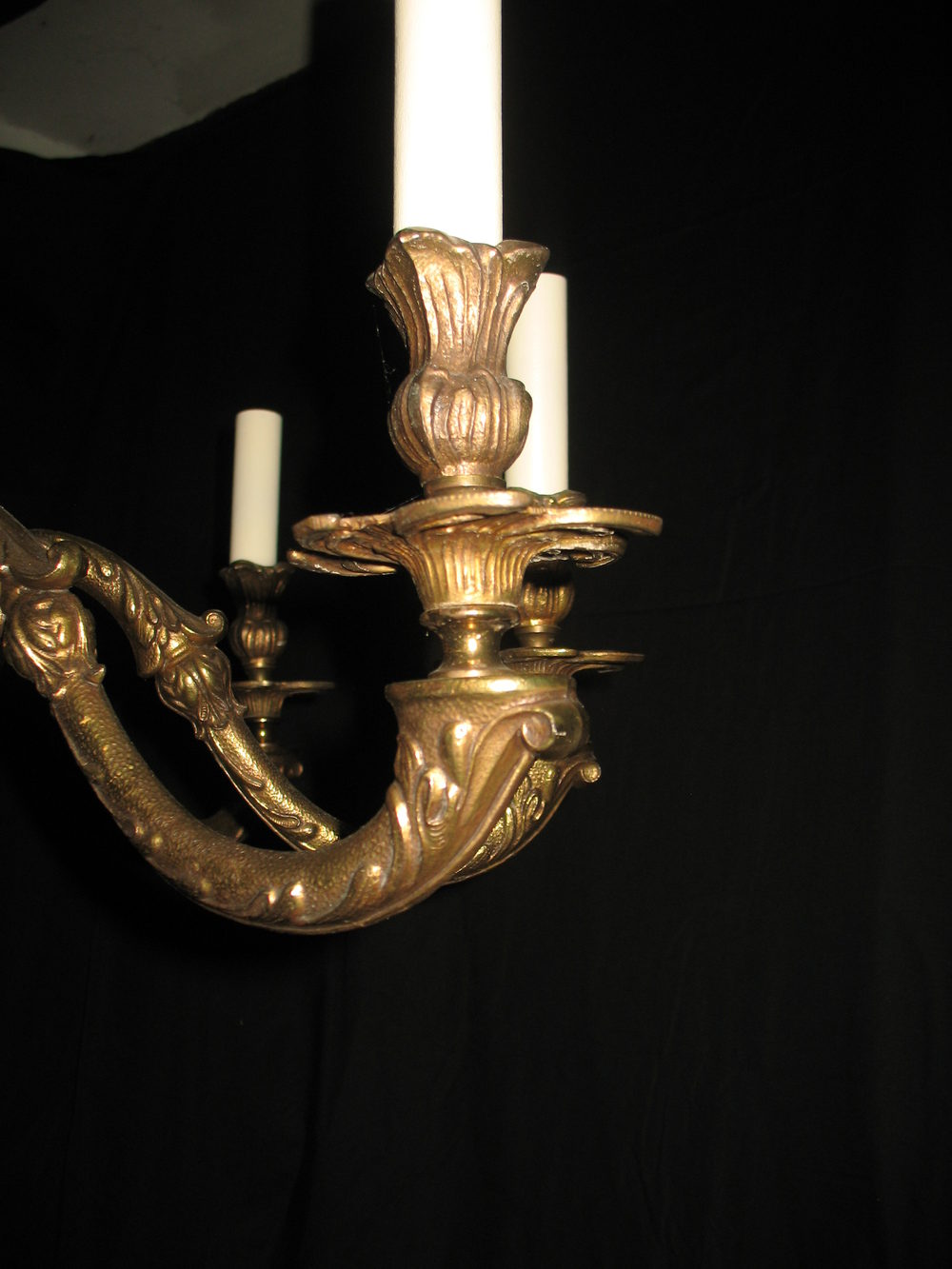 French Pair Of Gilded Bronze 5 Light Chandeliers