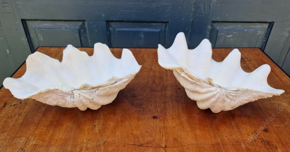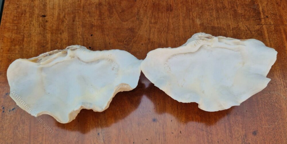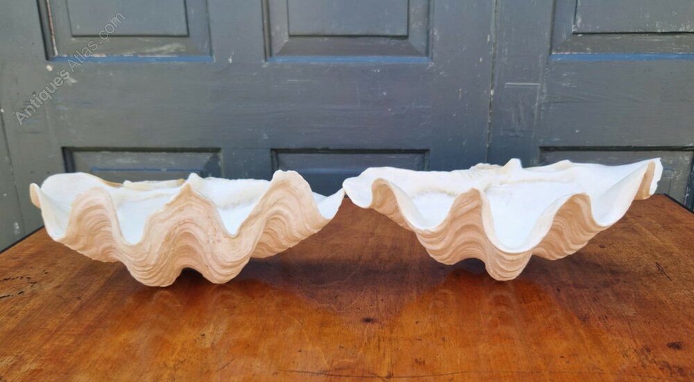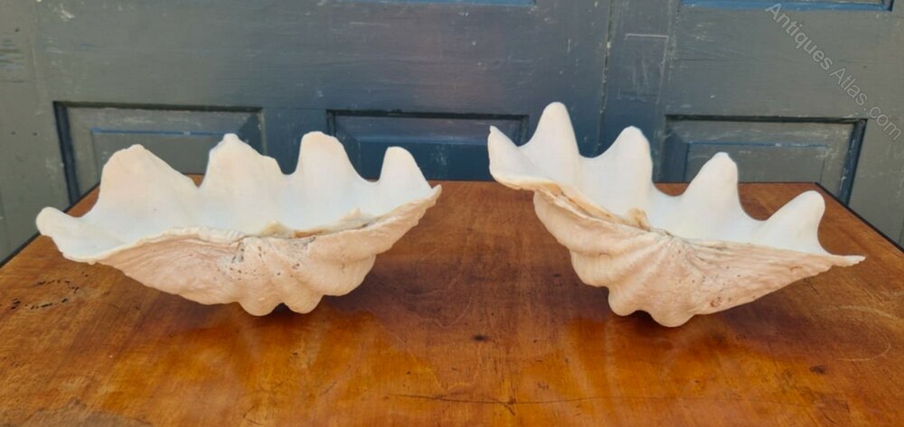 Lovely set of two (halves) early 20th-century natural history specimens of a Giant Fluted clam shell (Tridacna squamosa). The two shells are of a good scale and condition and overall good examples of the Tridacna Squamosa specimen.