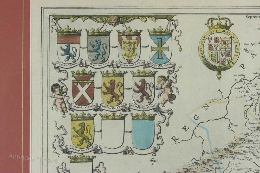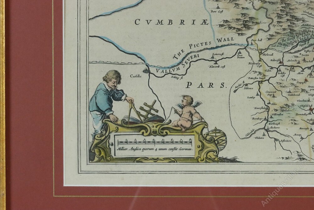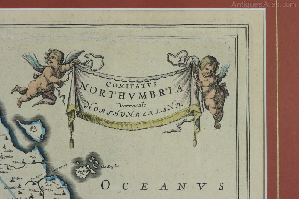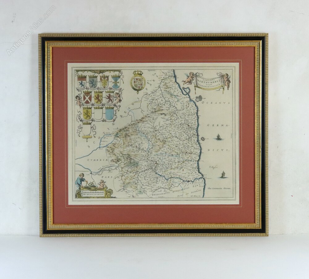 Framed Original Map of Northumberland by Blaeu