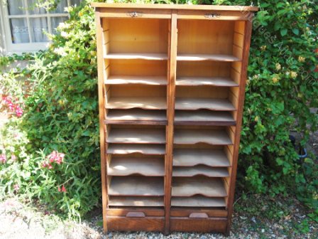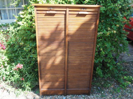 French 1950's oak Double Fronted Tambour Fronted Filing Cabinet