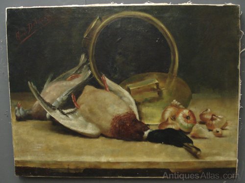 Ref 6172 - 19th Century oil on canvas. Still life - Game. Signed Gustave Duvilers.