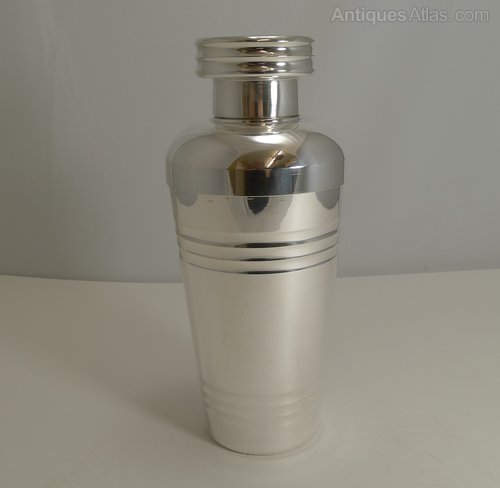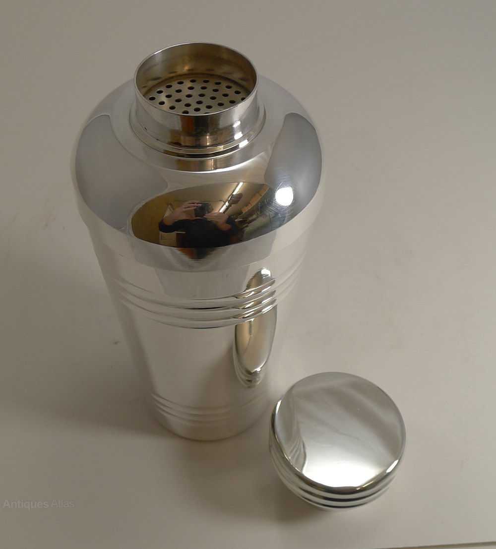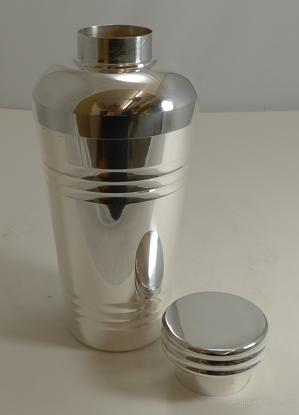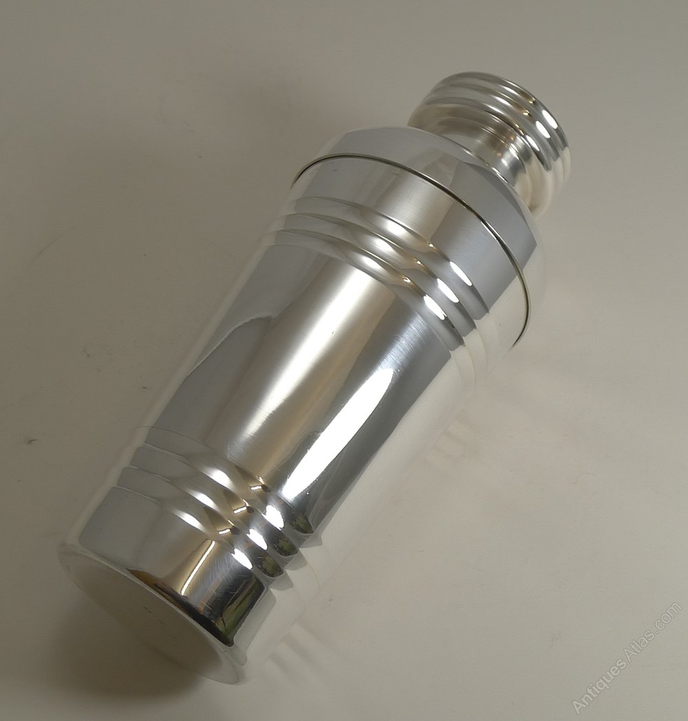 A very strong shape and design was adopted to create this large Art Deco Cocktail shaker dating to c.1930.