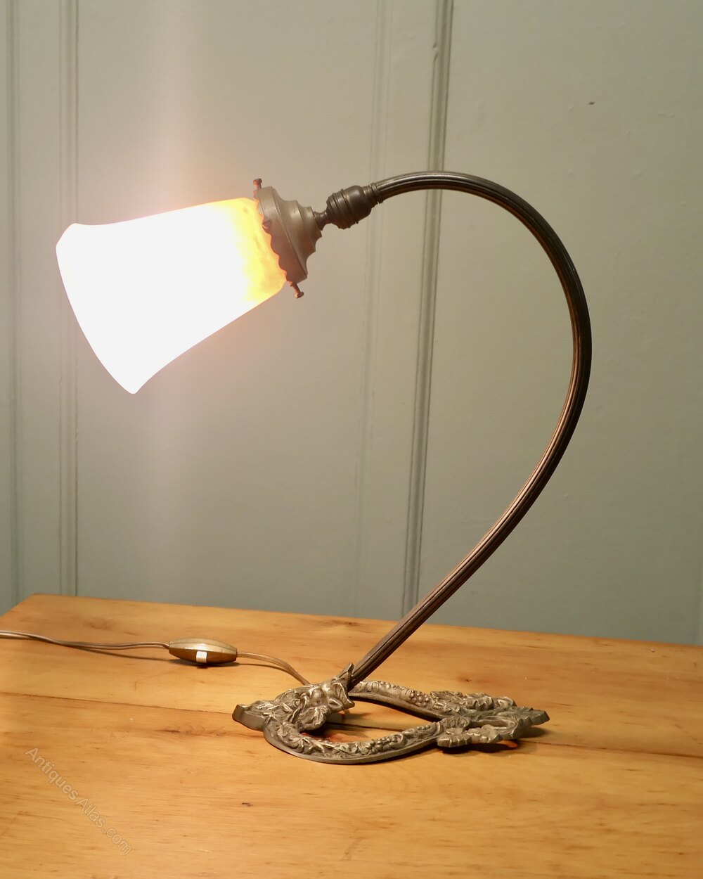 French Brass Bacchus Table Lamp with Opaline Glass Shade
