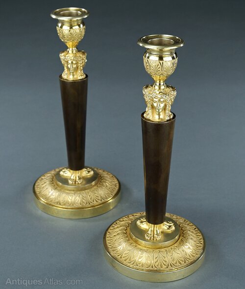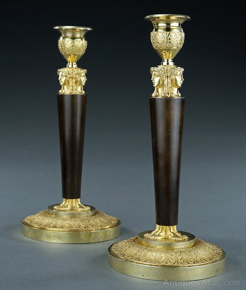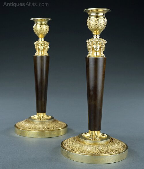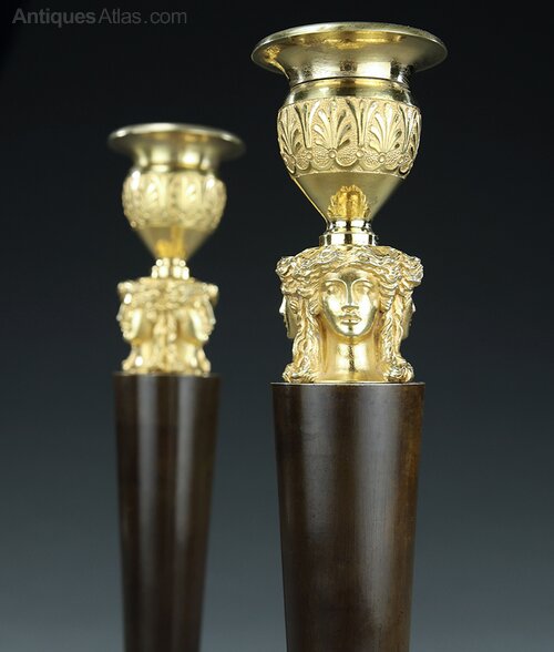 French Empire caryatid bronze candlesticks