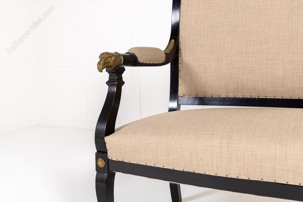A French Empire Style Ebonised Sofa with Fine Eagle Head Mounts.