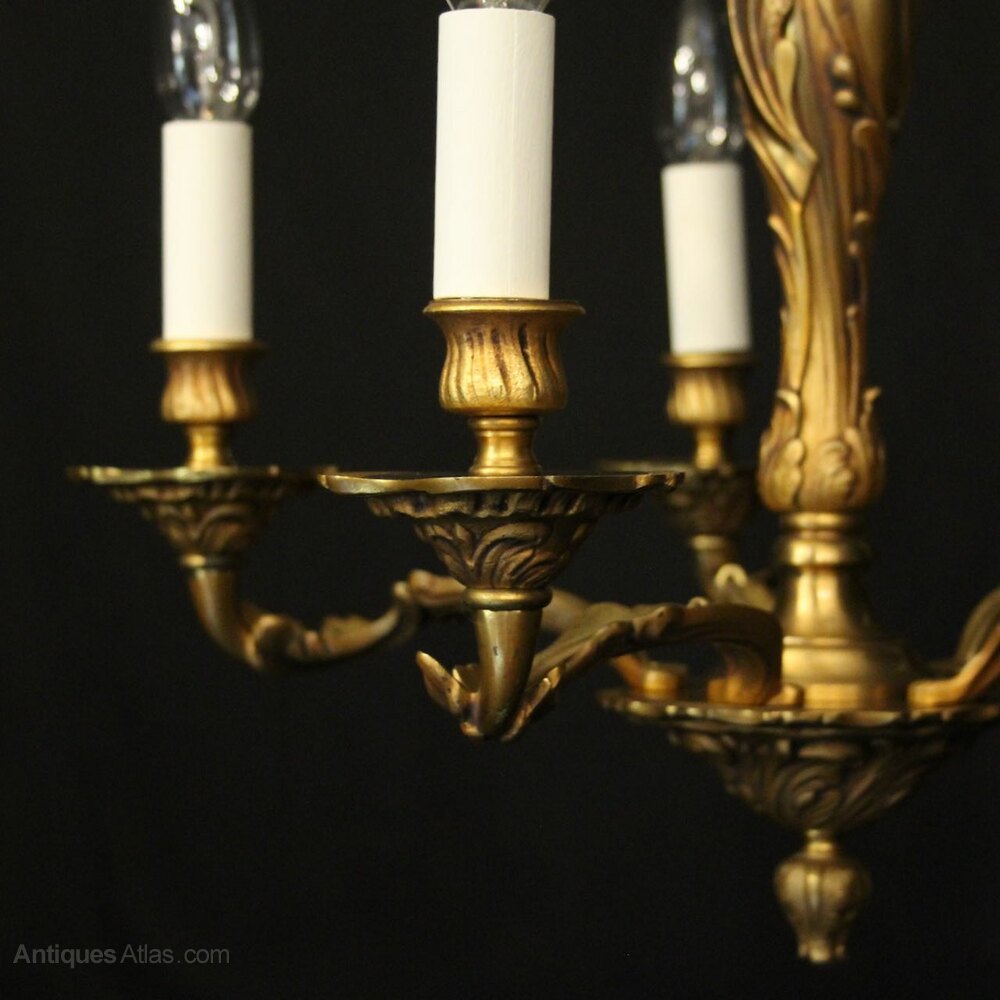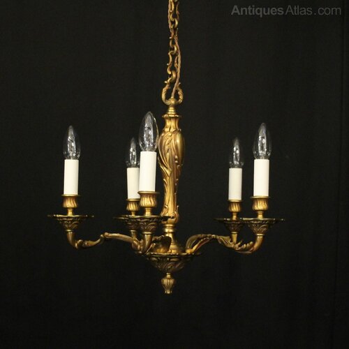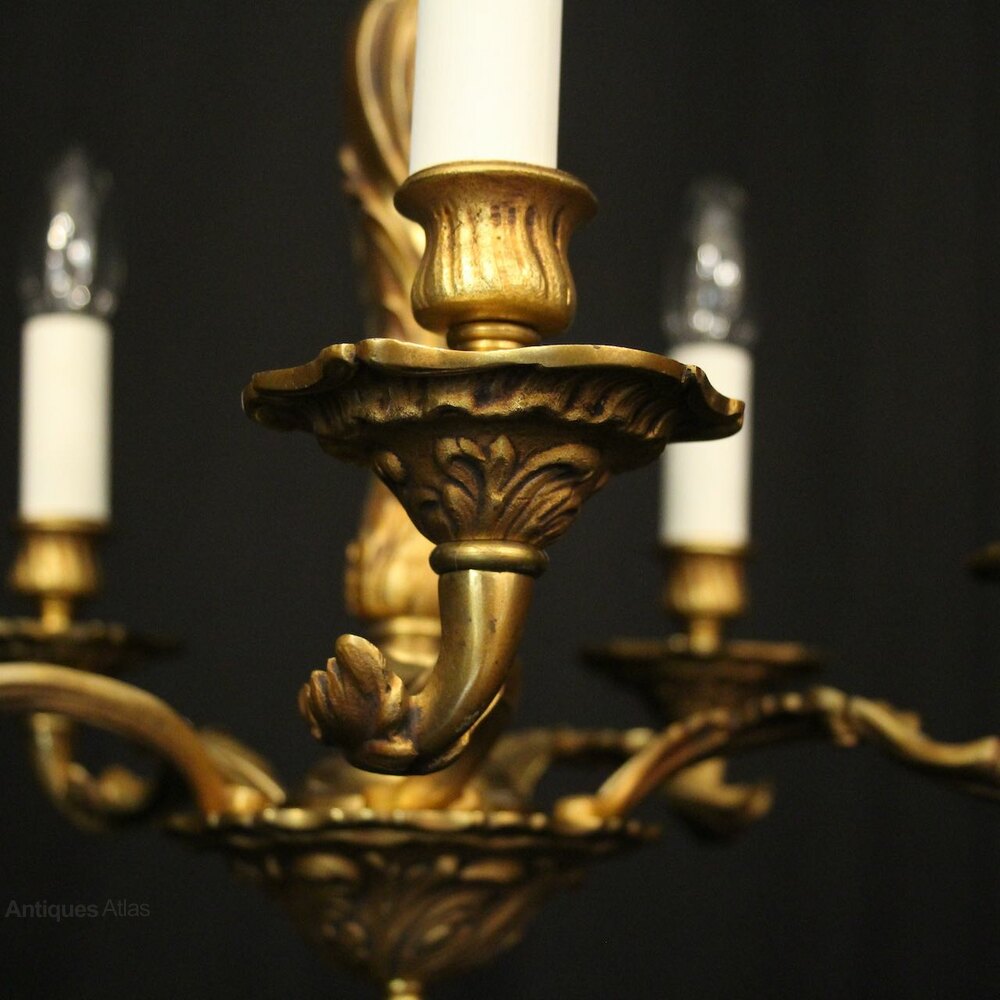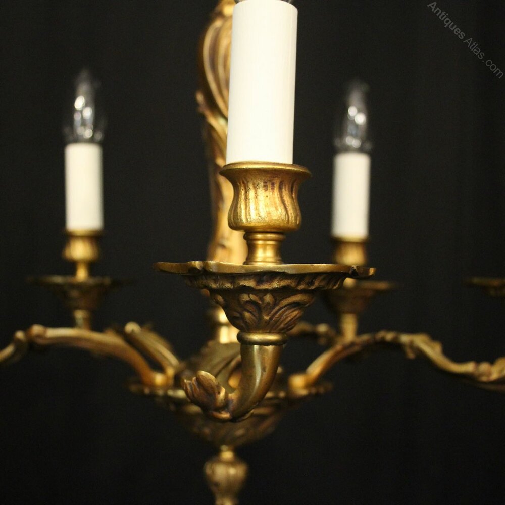 French Gilded Bronze 6 Light Antique Chandelier