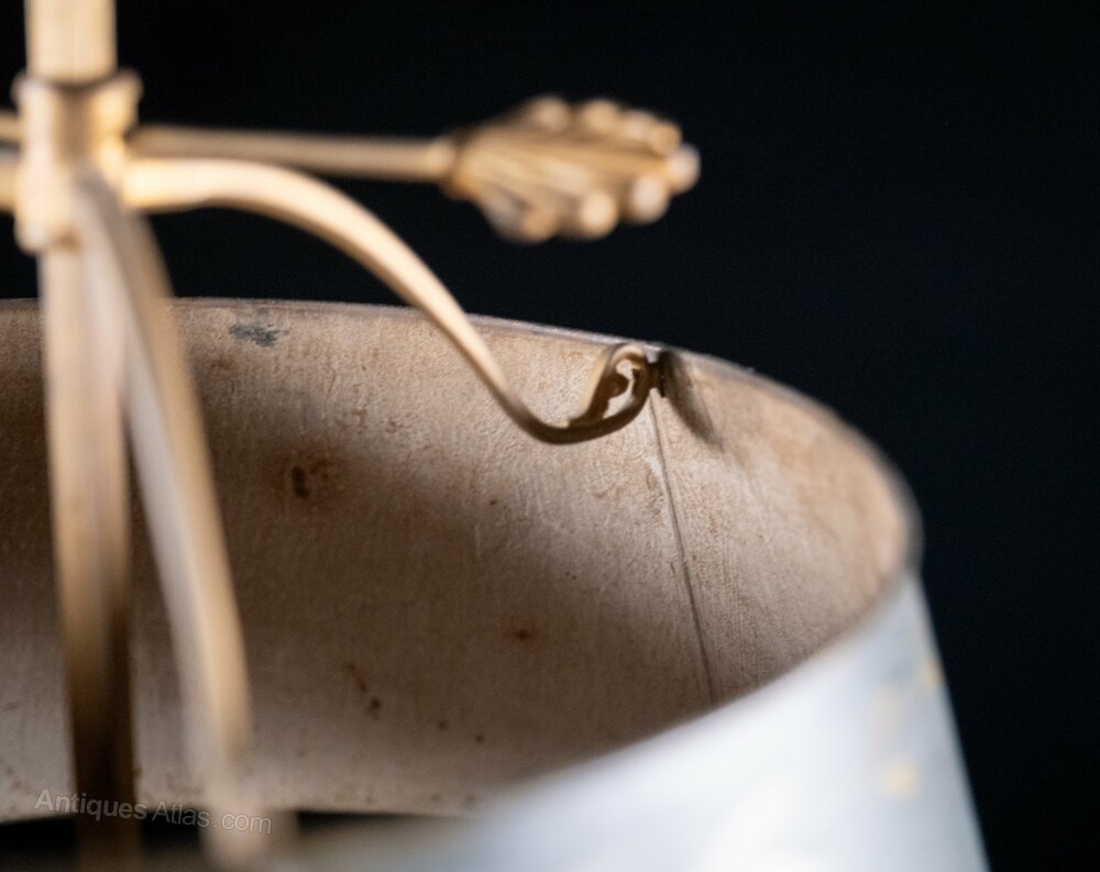 There is a small area of discolouration to the stem (please see photographs) and some discolouration to the interior of the toleware shade commensurate with age. Generally the lamp is in a very good condition throughout.
