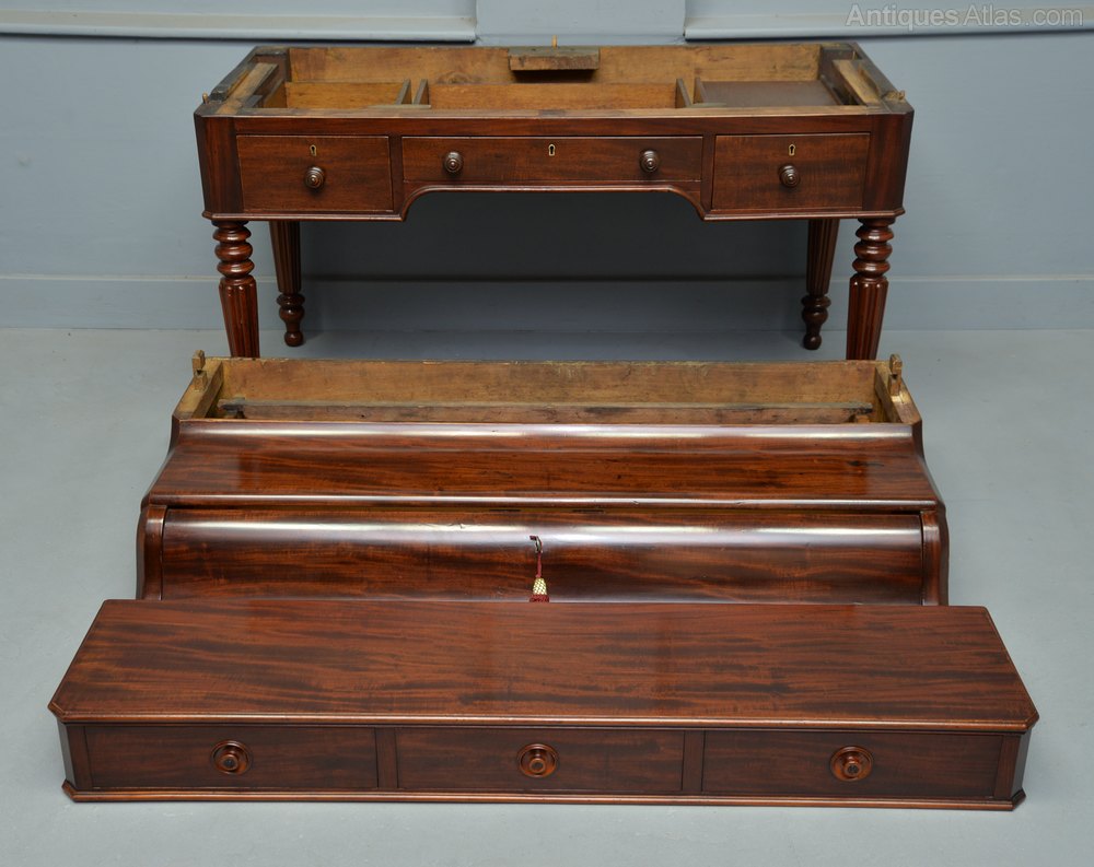An outstanding desk, of great craftsmanship. Stunning figuring and rich colour to the mahogany.