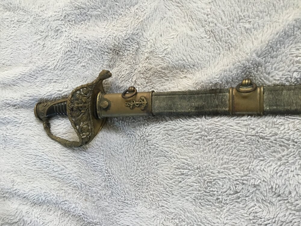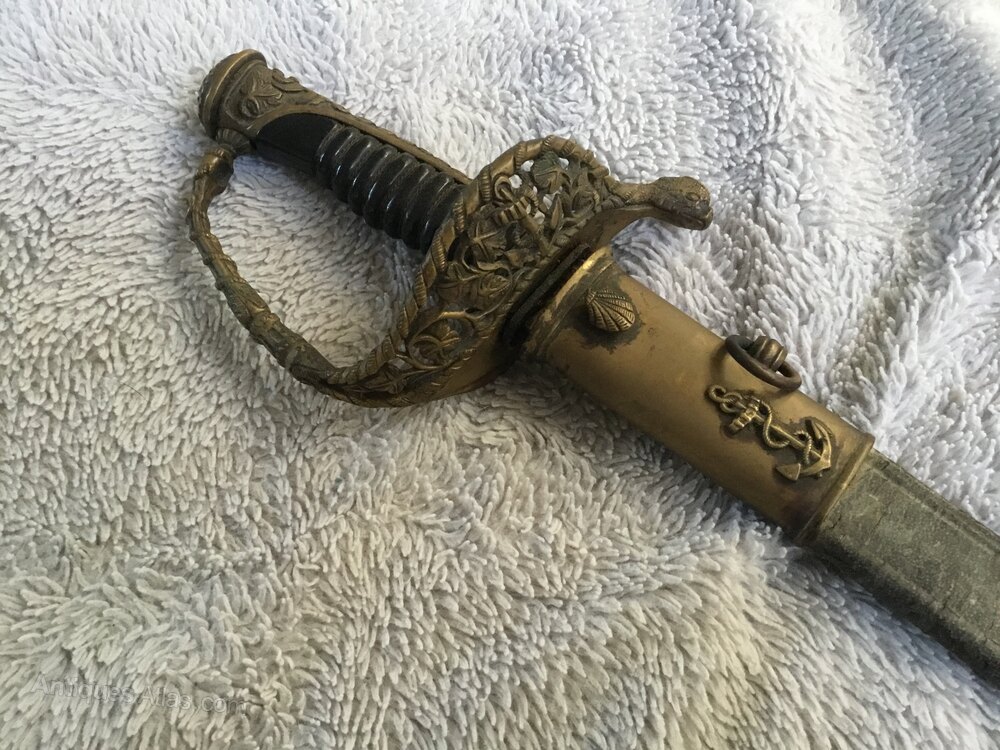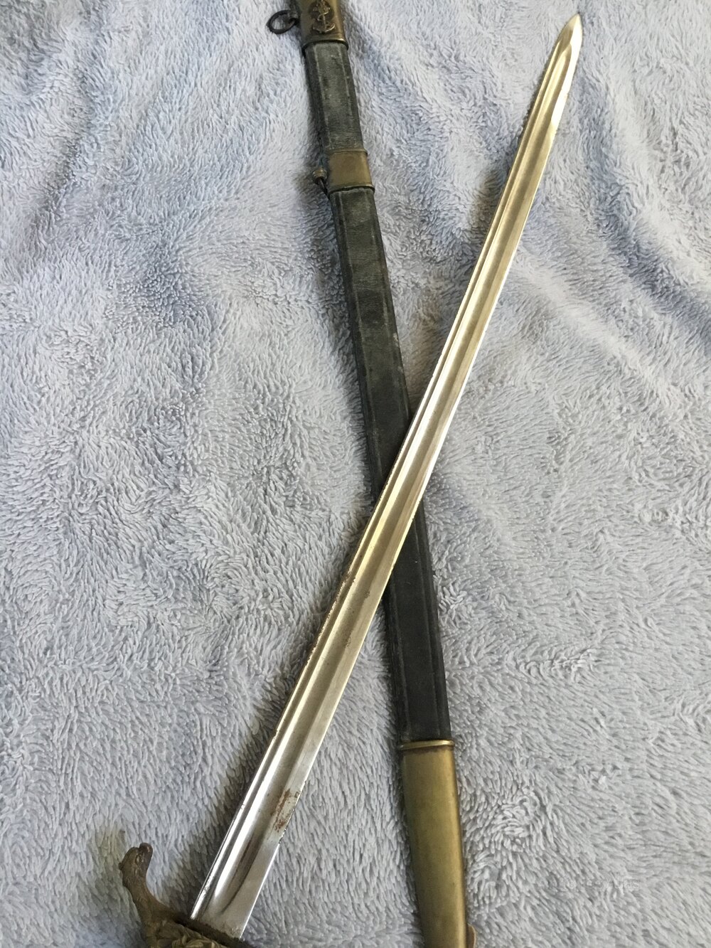 Very fine French Naval sword in leather scabbard circa 1860 in need of a clean and treatment of leather would benefit ,