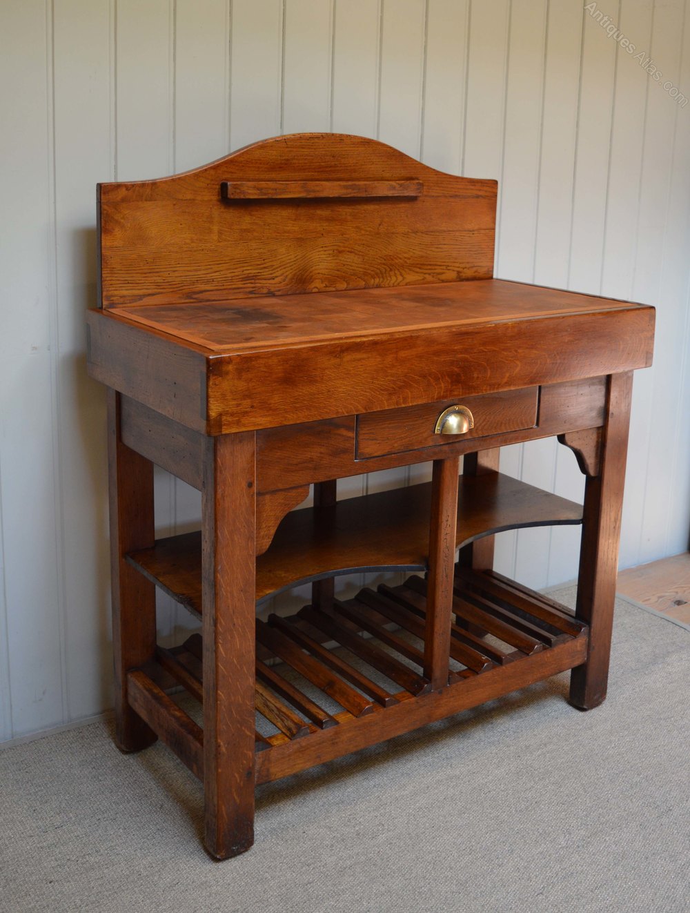 Oak Kitchen Cabinet, with a sectioned beechwood top and a knife rack to the back. Set above a single drawer and a undertiered section with a wine rack to the base.